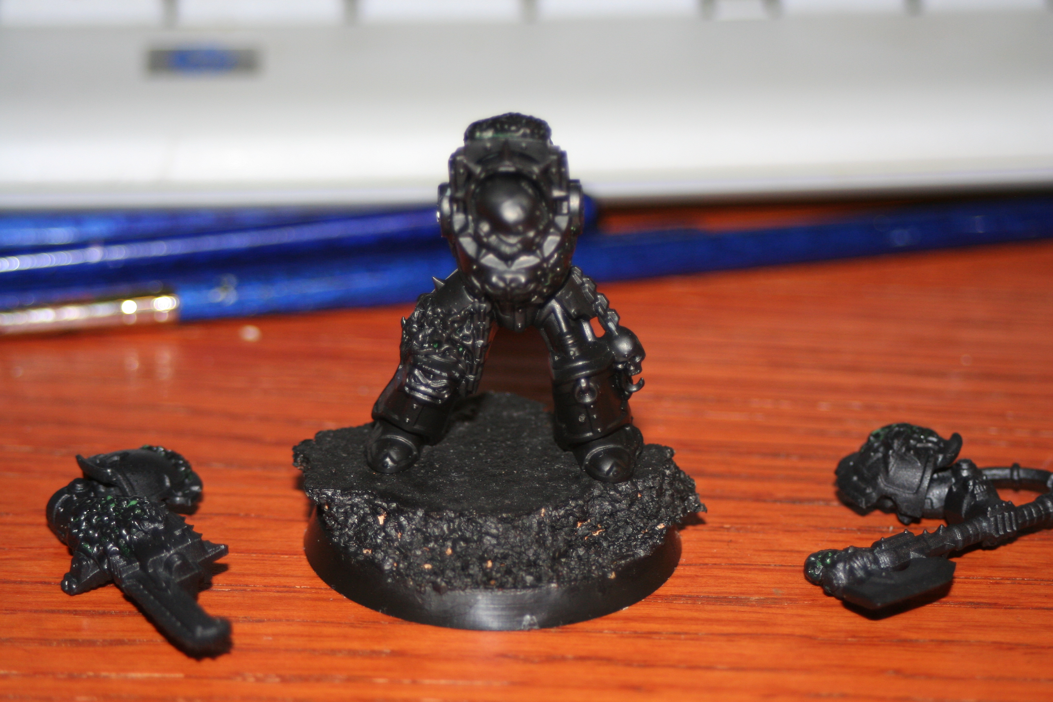 So Today ive done a bit of everything. I rebased my havocs black so i could repaint them in my new color scheme, added trophies to 19 backpakcs( I think 19) and painted the base color for the possessed and have started to sculpt on my demon prince and my second rhino, so yeah, like i said abit of everything