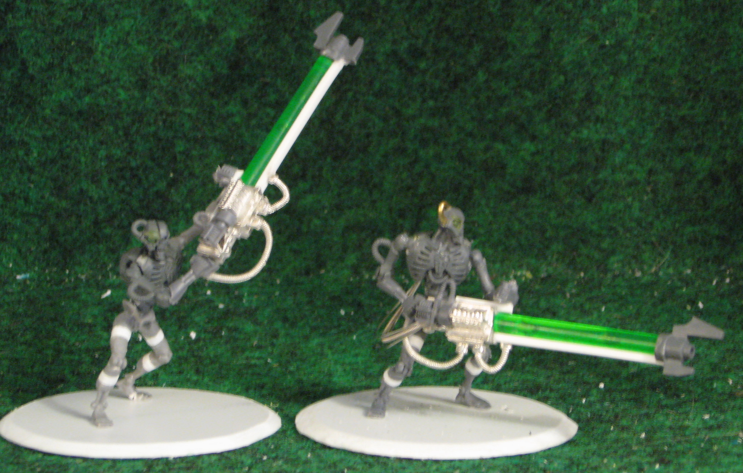 Anyways... First shot is a pair of Heavy Destroyers showing off their guns with the green rods set in place but not glued. Second is a group shot of both units of three.