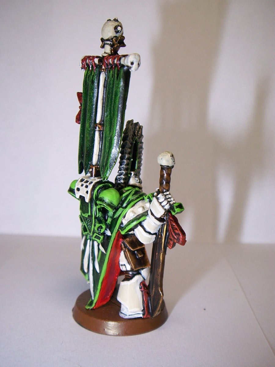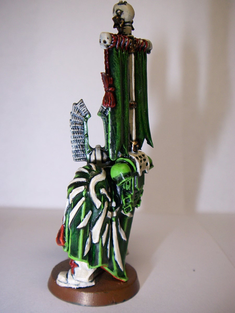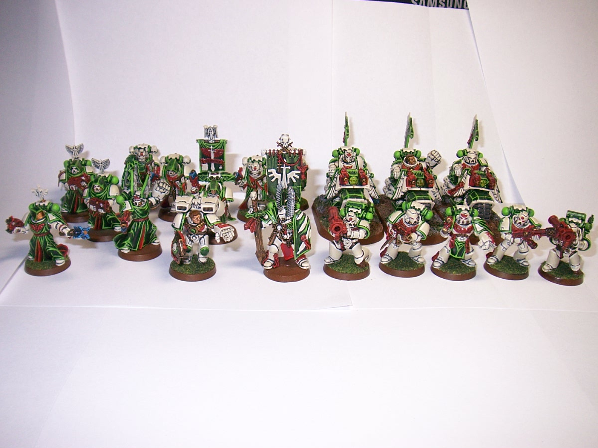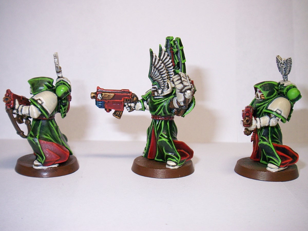 Love the painting , makes the robes look like velvet. Great work all round . Although I'm a traditionalist and think the armour should be dark green and only termies bone white . I know one day I'll get athsma from too much fluff. And if the bikes are not black then they can't be part of the ravenwing , in the old rules they wouldn't get the advantage of being an expert rider , ( can't remember the rule now, its late and I just finished a 12 hour shift) . I don't think thats in the new rules though . Hey vanilla is the new black !