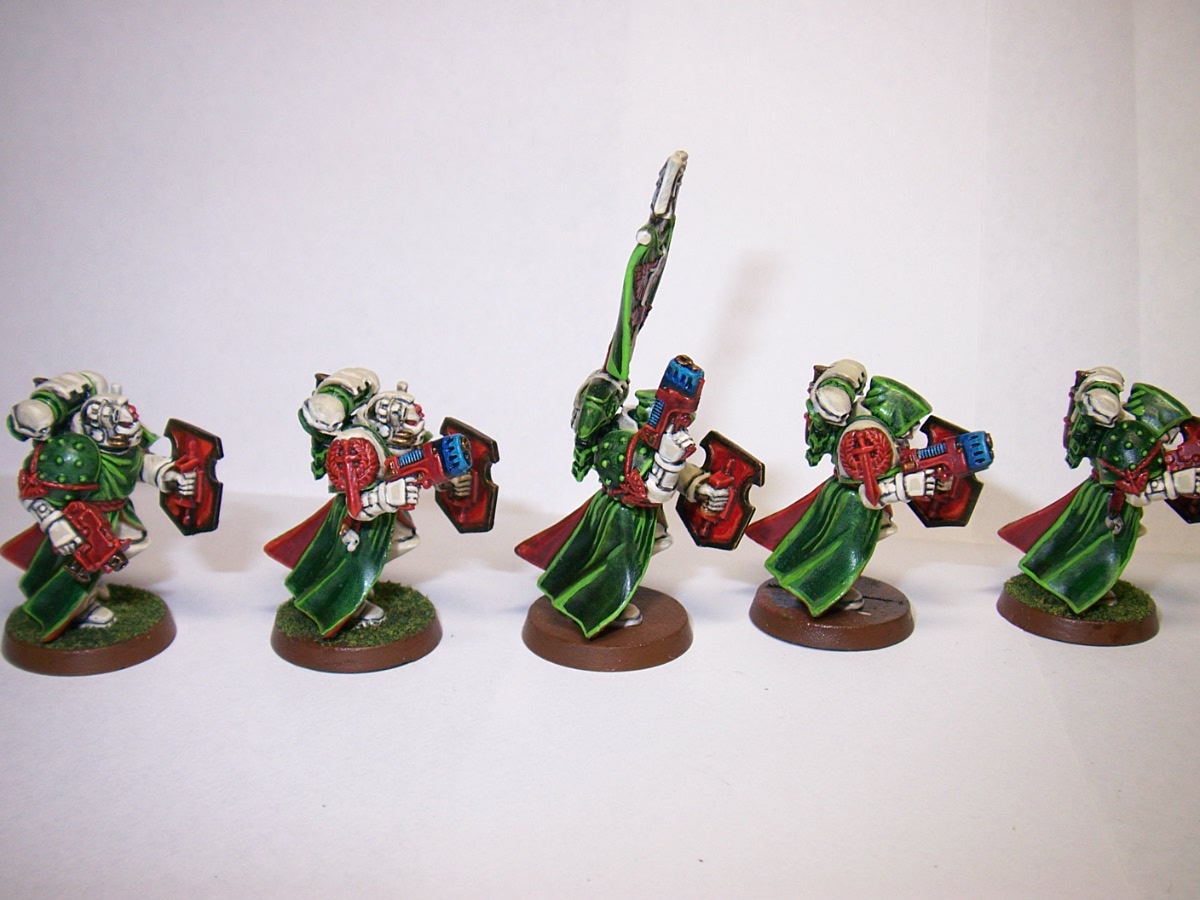 I love the vets matter of fact I love the entire army AND the concept. The only critique I have (And it really isnt one, more like a suggestion) the green highlights are very bright. Maybe do a thinned DA green + Goblin Green, then pure golin on the very edges. It's just one of those things that would bring a nice looking army to another level.