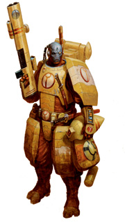 I see the Tau military methodology as being very Roman. The Tau regard their culture and technology as being the best in the known world, just like the Romans. The Tau desire to expand their territory first by offering their technology and culture in exchange for native peoples of the desired region swearing obedience to the Tau. If that doesn't work, the Tau conquer with their very advanced and disciplined military force. Tau Fire Caste warriors, just like Roman Legionnaires, believe one particular method of combat is proper and train and excel in that form to the exclusion of others. To make up for that focus, the Tau like the Romans recruit Auxilliary units from the frontier alien/barbarian regions they conquer and use the strengths of those people to augment their own troops. The Imperium of Man, on the other hand, is only superficially Roman. Ultramarines may have leather strappy pants over their armour, but that doesn't make them Romans. When Romans conquered a territory they took slaves, took booty, and then set about "civilizing" the local populace into Roman ways, even if the local "barbarians" seemed utterly alien to Romans. When the Imperium conquers new territory, they exterminate any locals who are not already pretty easy to adapt into Imperial rule.