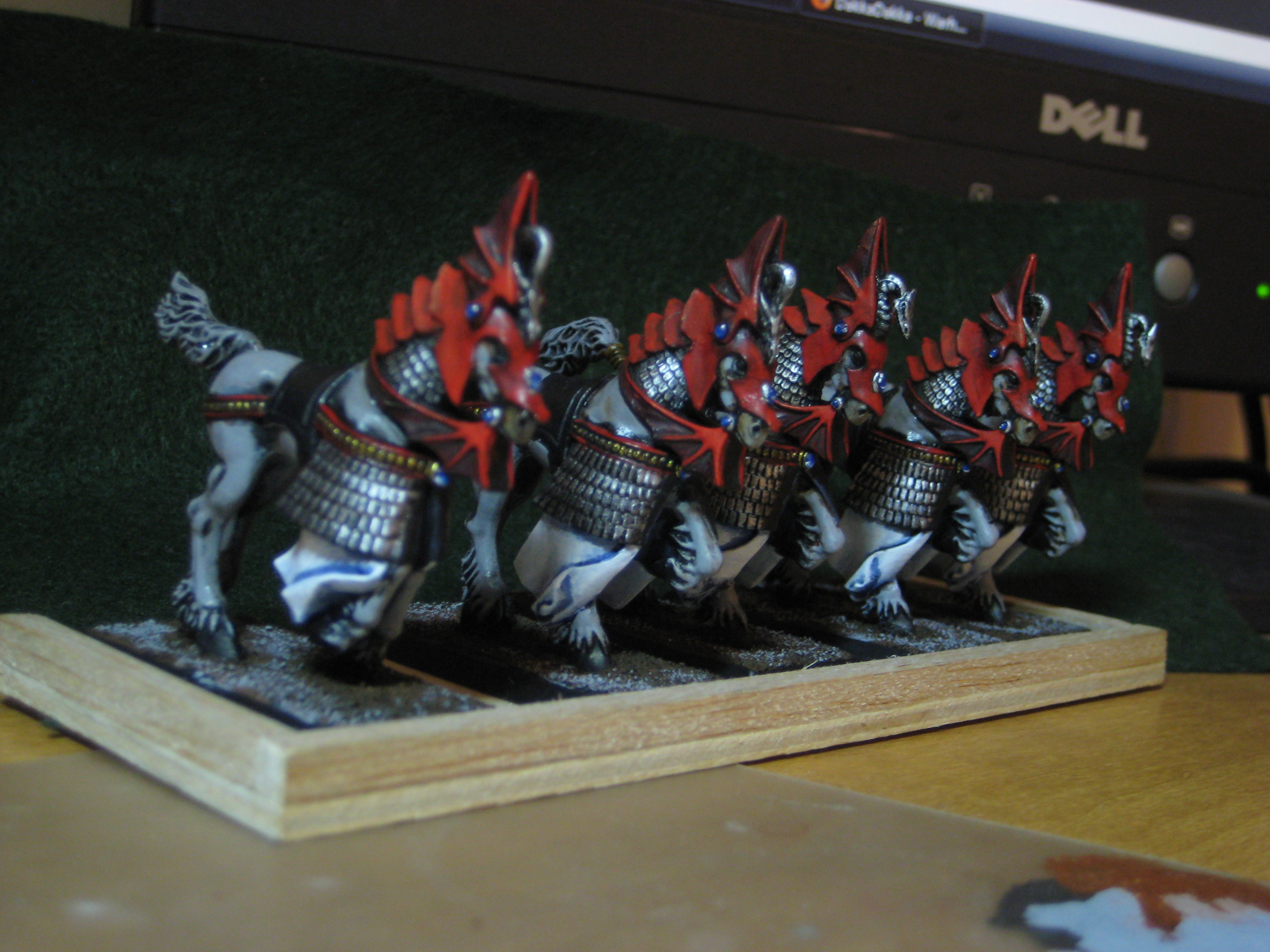 I finished off the horses for my first unit of Dragon Princes. All they need is some static grass and some varnish.