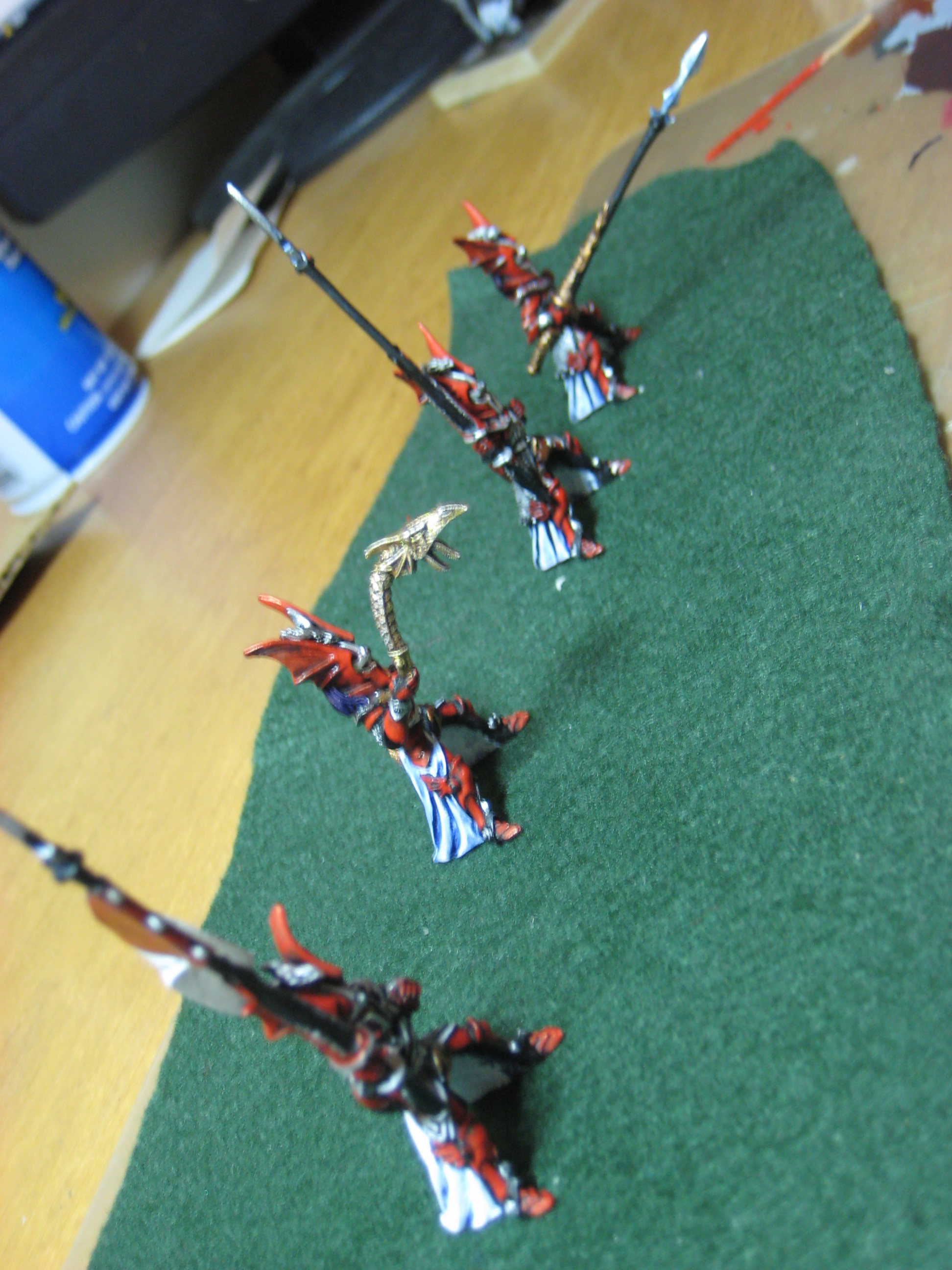 @Darknight - thanks for the compliments! Yeah, I'm trying to figure out how to add a bit of "zazz" to the models. For instance, the Dragon Princes (these guys, at least) are getting blue helmet tassles, and blue gems are the generic color I'm going for.