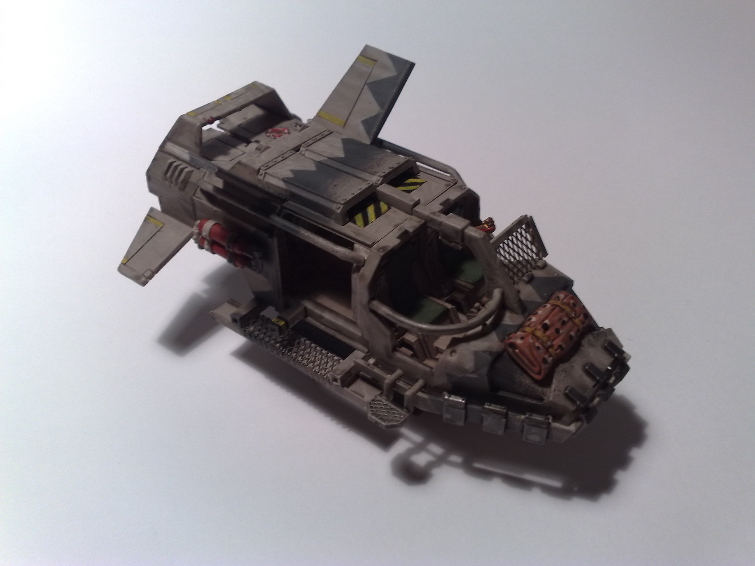 i agree, werent GW suppsoed to actualyl make a multi part palstic kit with a land speeder as a light transport that would be similar to this?????? i realyl love this though. you really pulled this one off very nicely, well executed