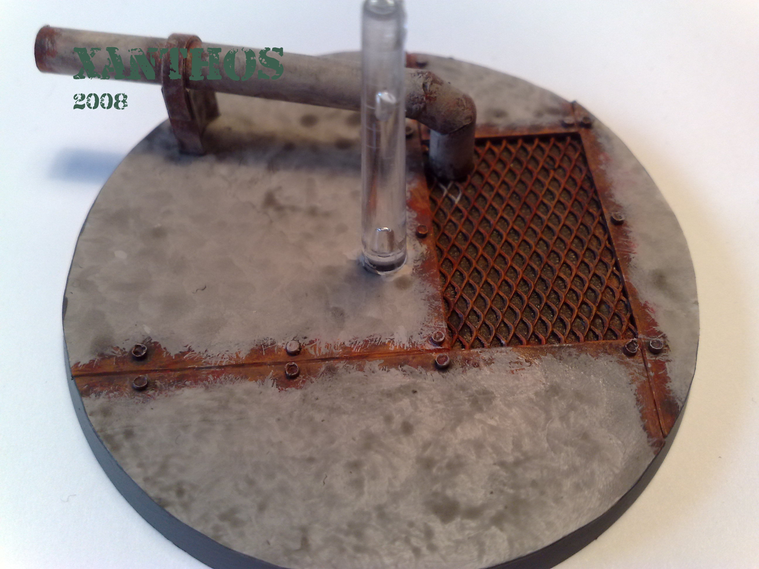 For the base, I decided to go with a rusted plating look, I figure since this thing will primarily be used for necromunda style cityfight games, it kinda fits the style.