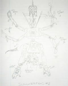 So i have some stuff started on my second slaughterfiend, and while i was in class today i drew up a rough concept of it. it is going to be a knight style defiler, and the pose will definitely not be so static as it is in the picture.