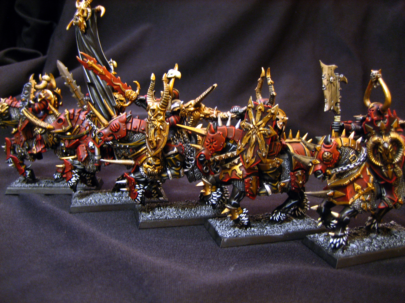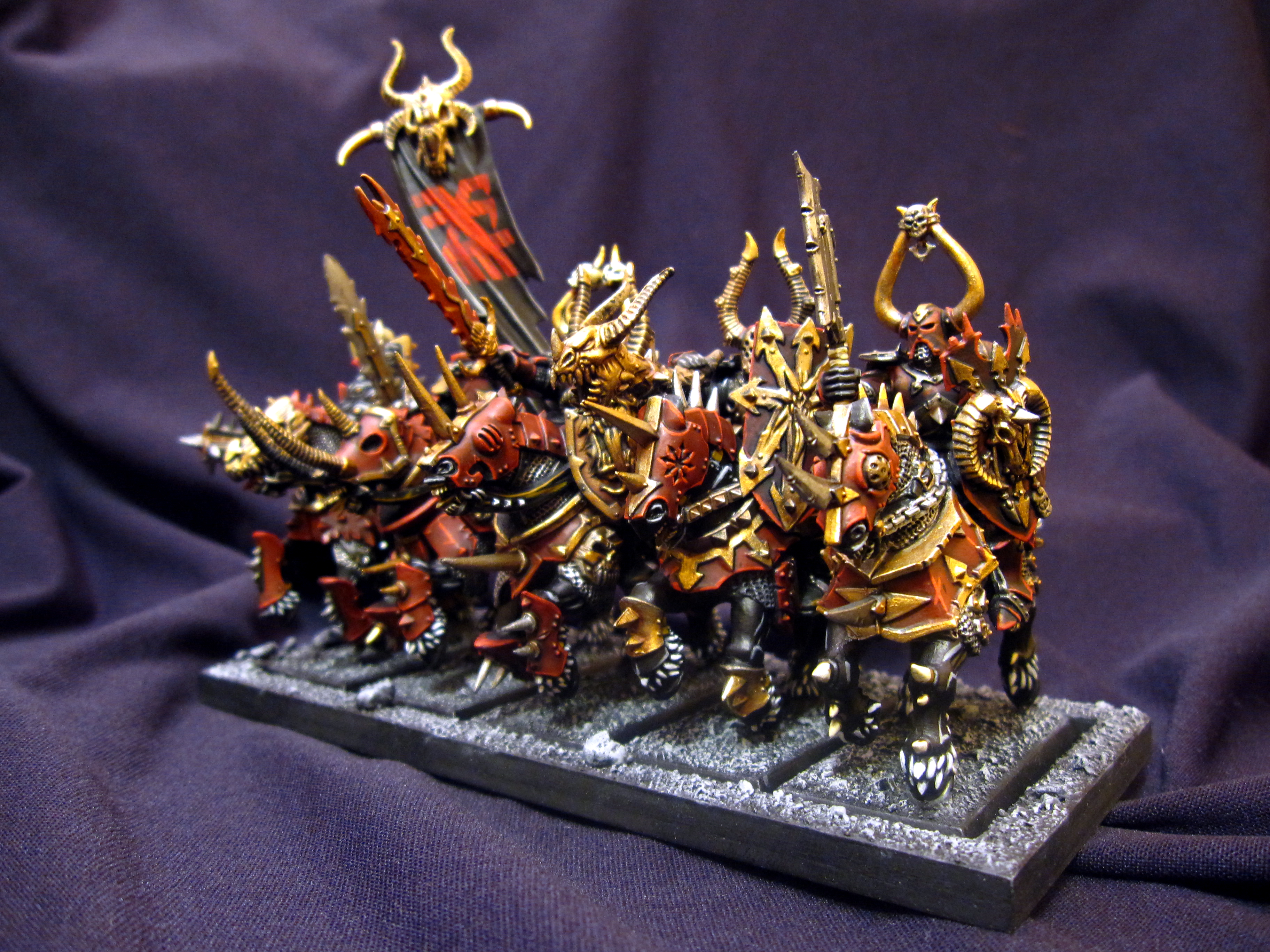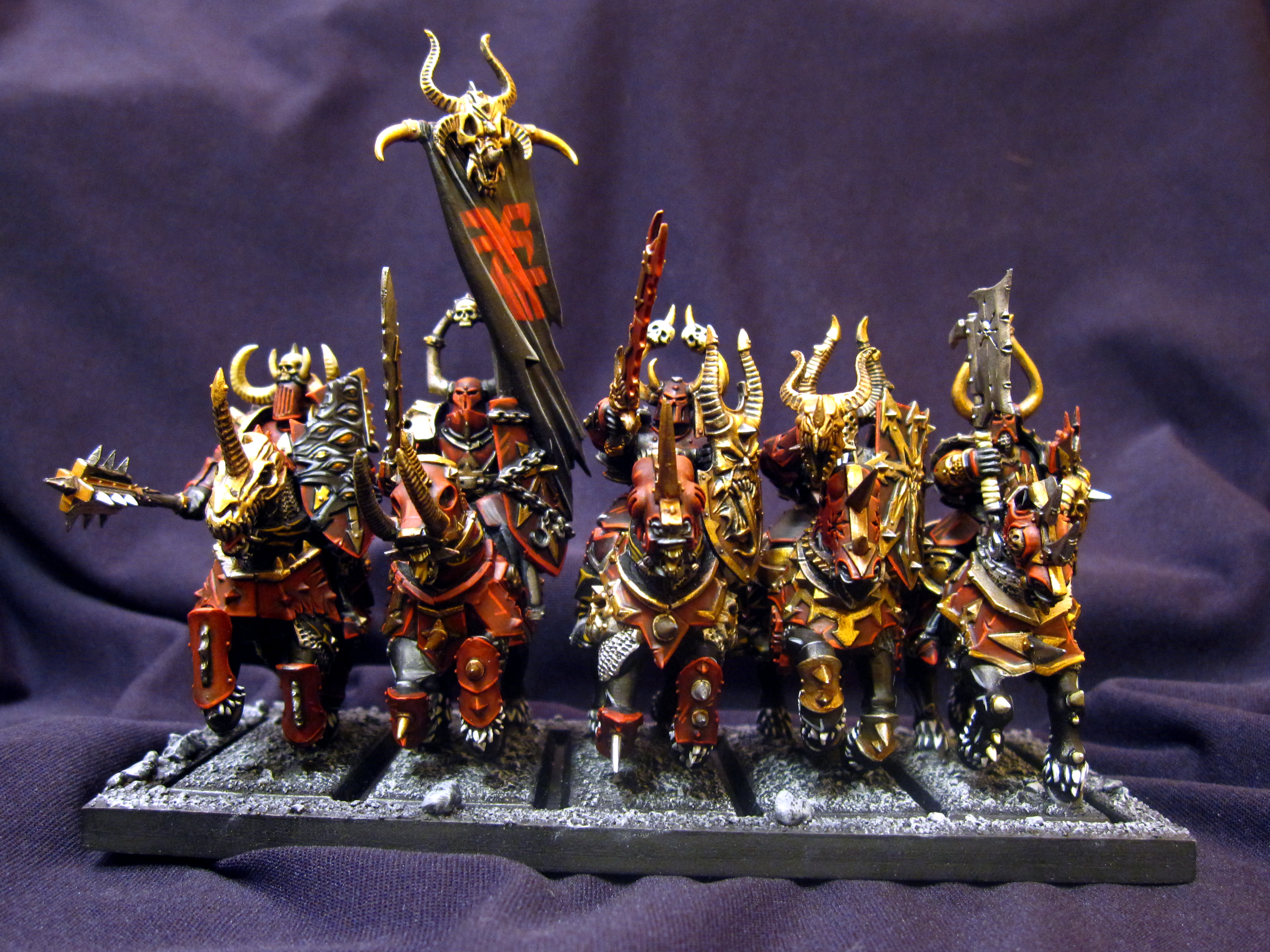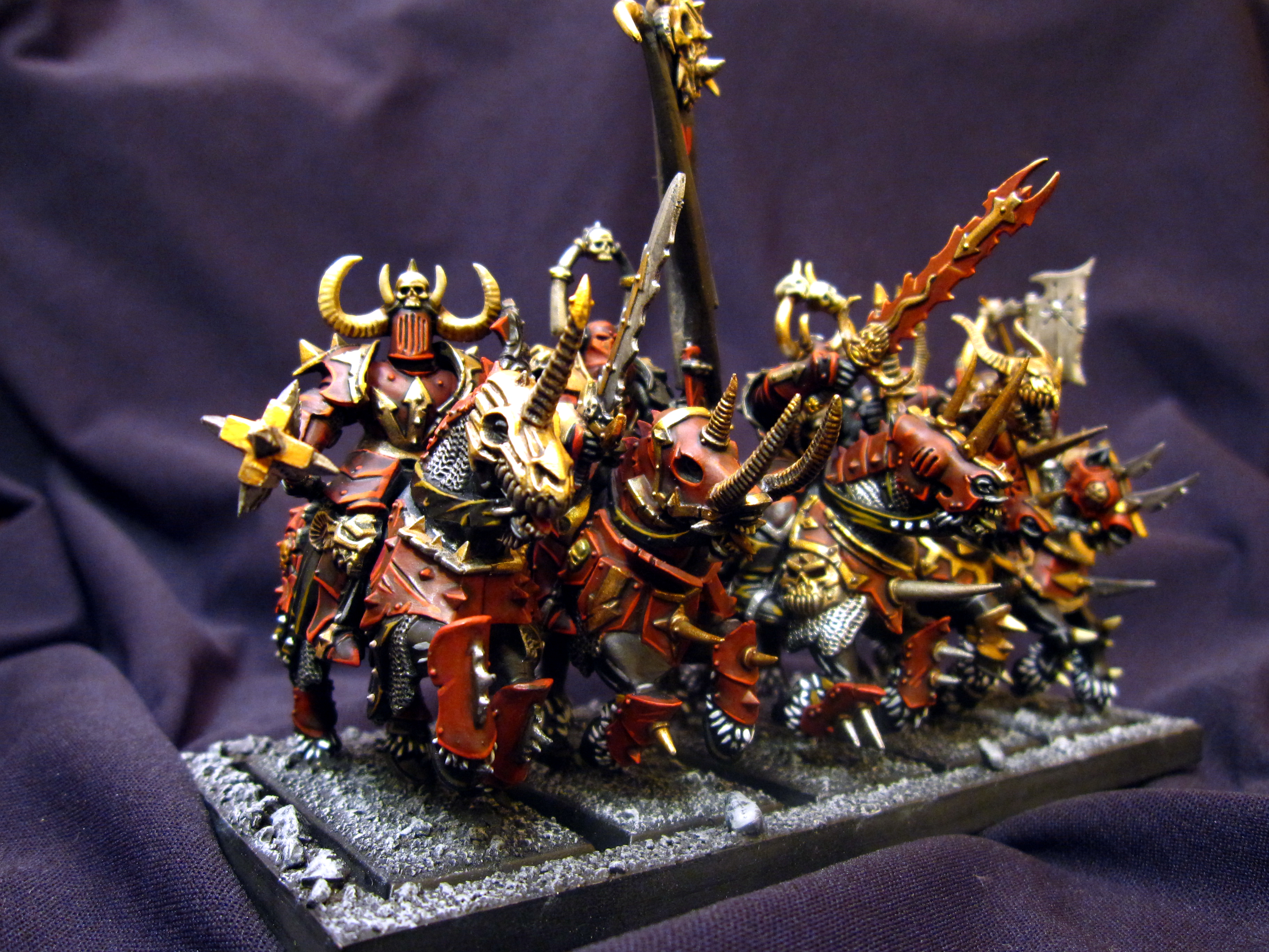 Those Chaos horses are gorgeous. Great stuff. I may have to "borrow" some techniques with the red for my Dragon Princes.