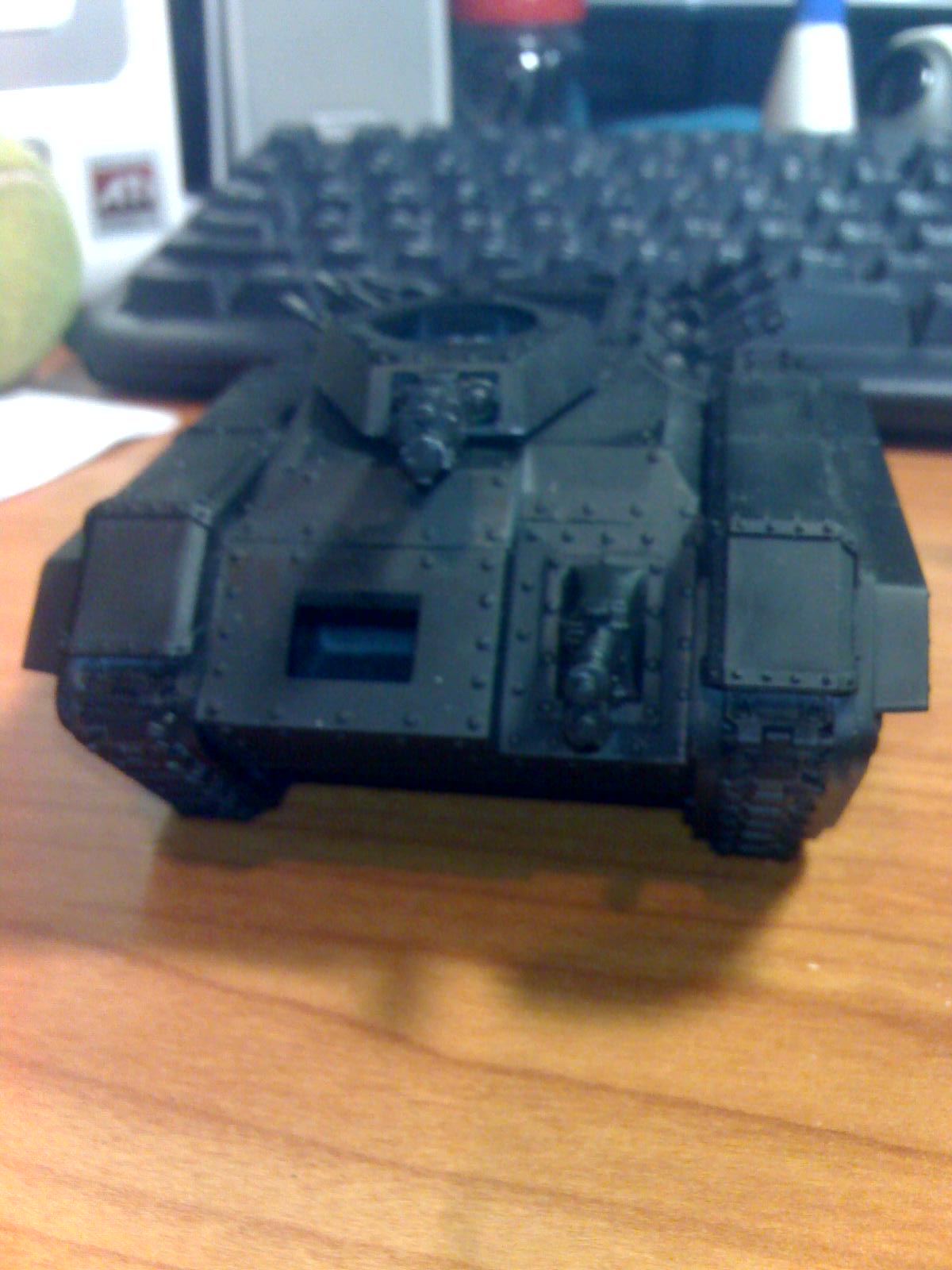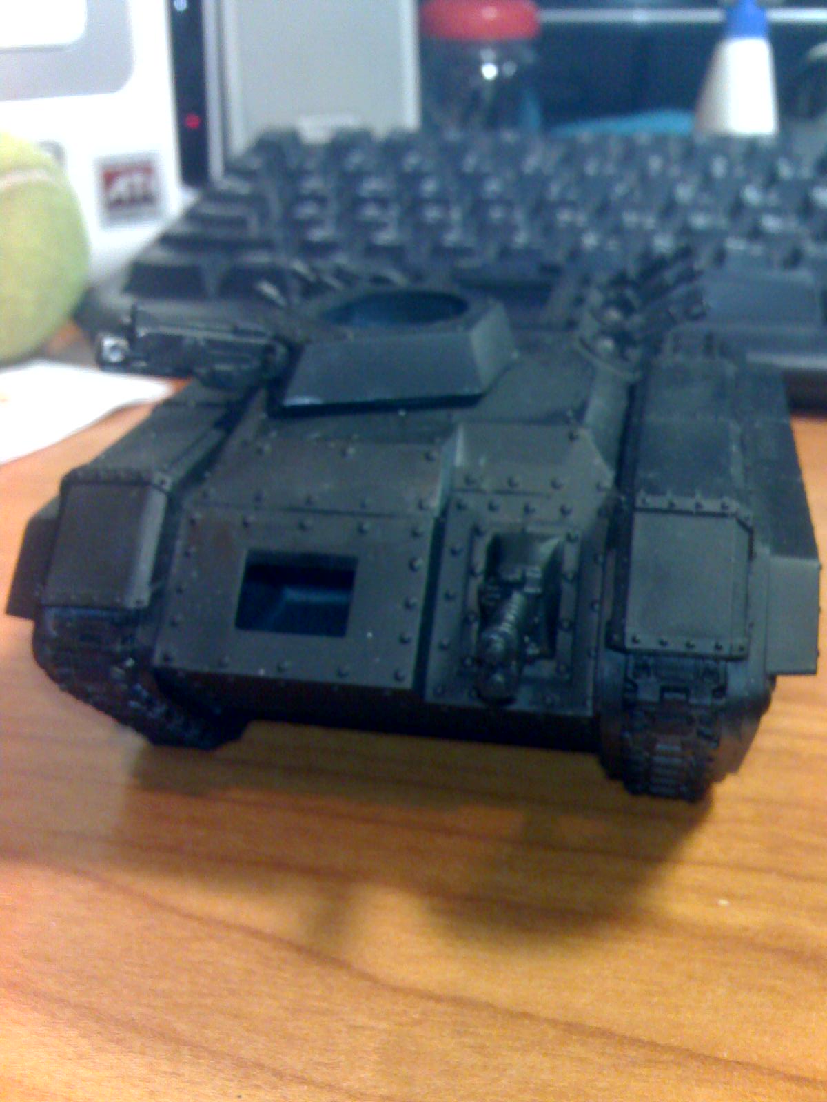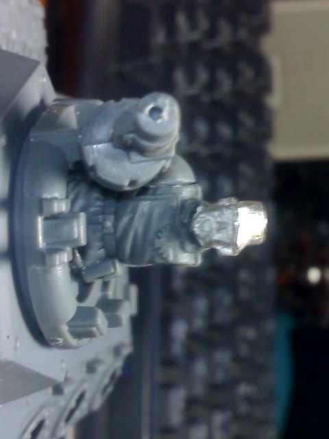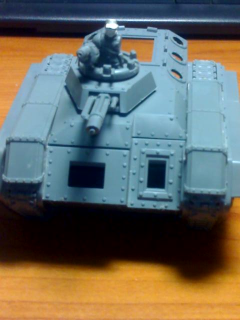 HEllO!!!, my ride has arrived, and I have roughly made the tank, FIRST EVER IMPERIAL GUARD TANK BUILT!!!!!, still working on some stuff but its coming together, and I got my airbrush now, so I can paint camo schemes easily, thats all for now. The head on the commander is a IRON PIG product