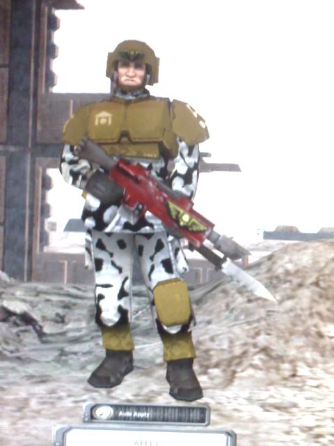 Hey guys, heres some more pics, not many but a few, and I also need help with a scheme, I have a couple of choices that I made on Dawn Of War, I like my current one, but it's a bit boring, need to "spice" it up a little bit, make unique schemes for commander units, and so I have posted some pics here, and here are some converted chimera turret to a heavy bolter, more of infantry soon!!!