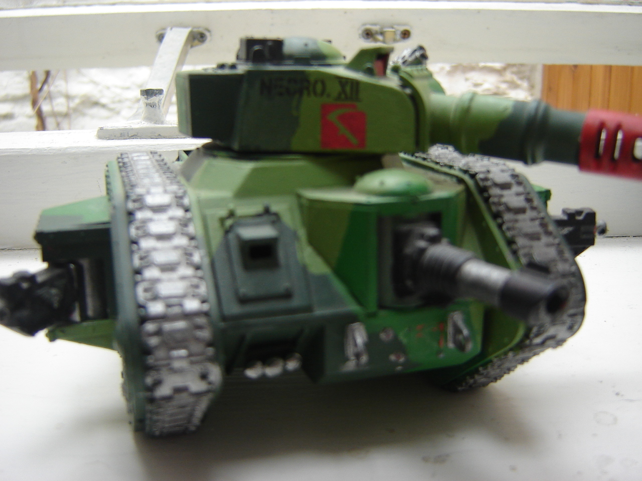 Great work so far, Your right that red really gives the cannon a lift. The overall camo design is really going to break up the outline of your tanks as they trundle through the war torn streets of a hive city, can't wait for the next pics.