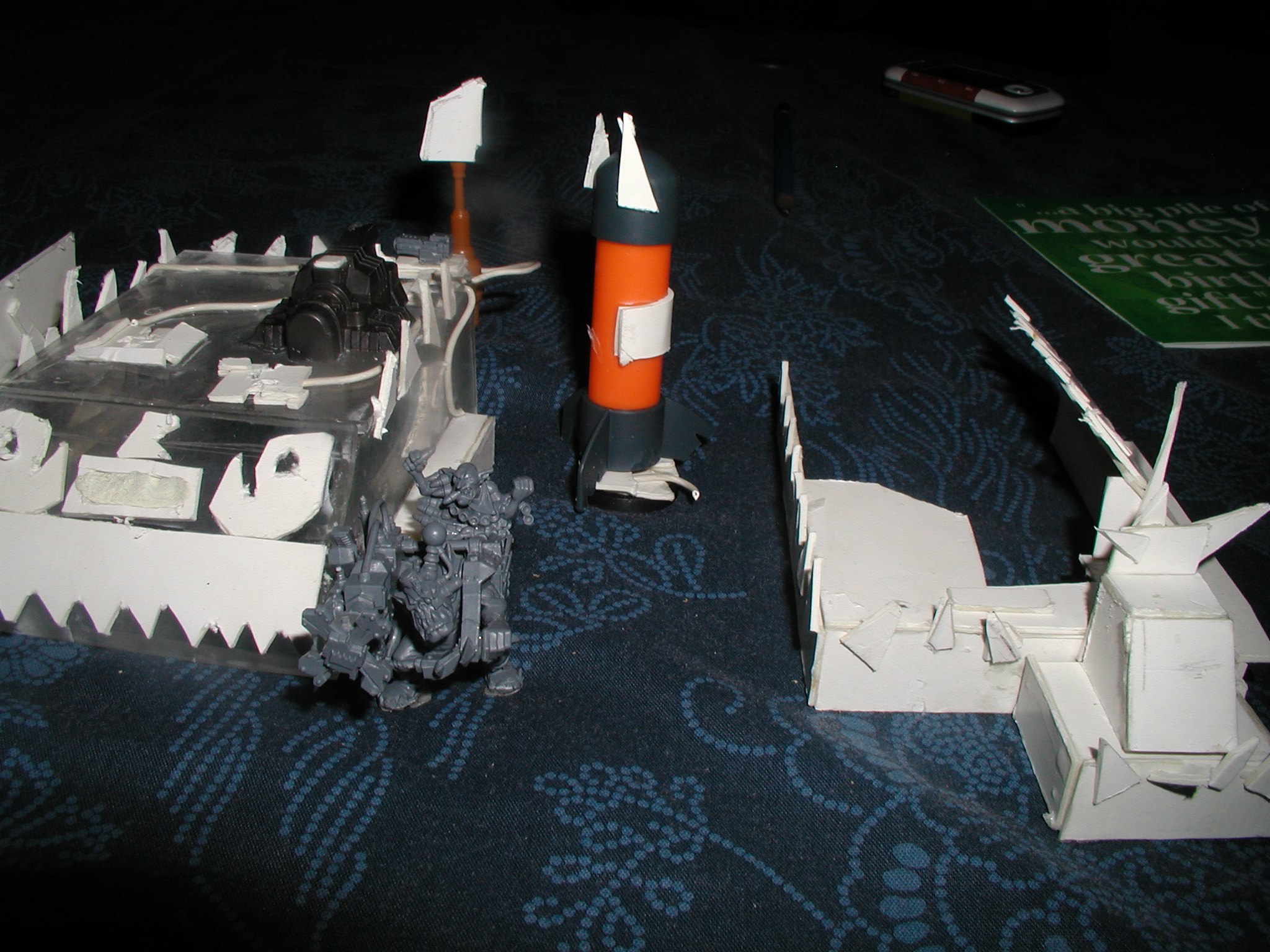 ok top part of looted wagon gona make it deeper and probaly longer, but i ran out of plasticard so gonna get some 1x1 foot instead of my 4X10 inch board oh for measurement purposes looted wagon is the same size as trukk.