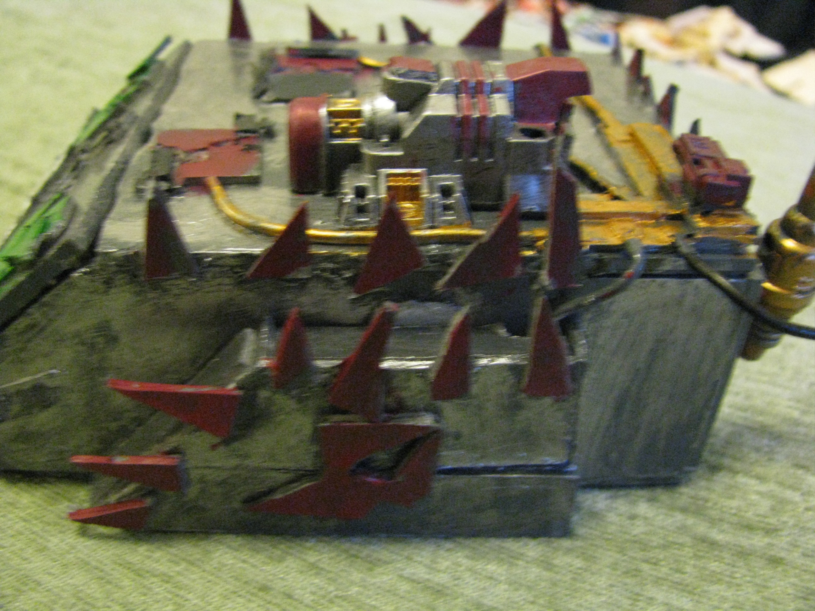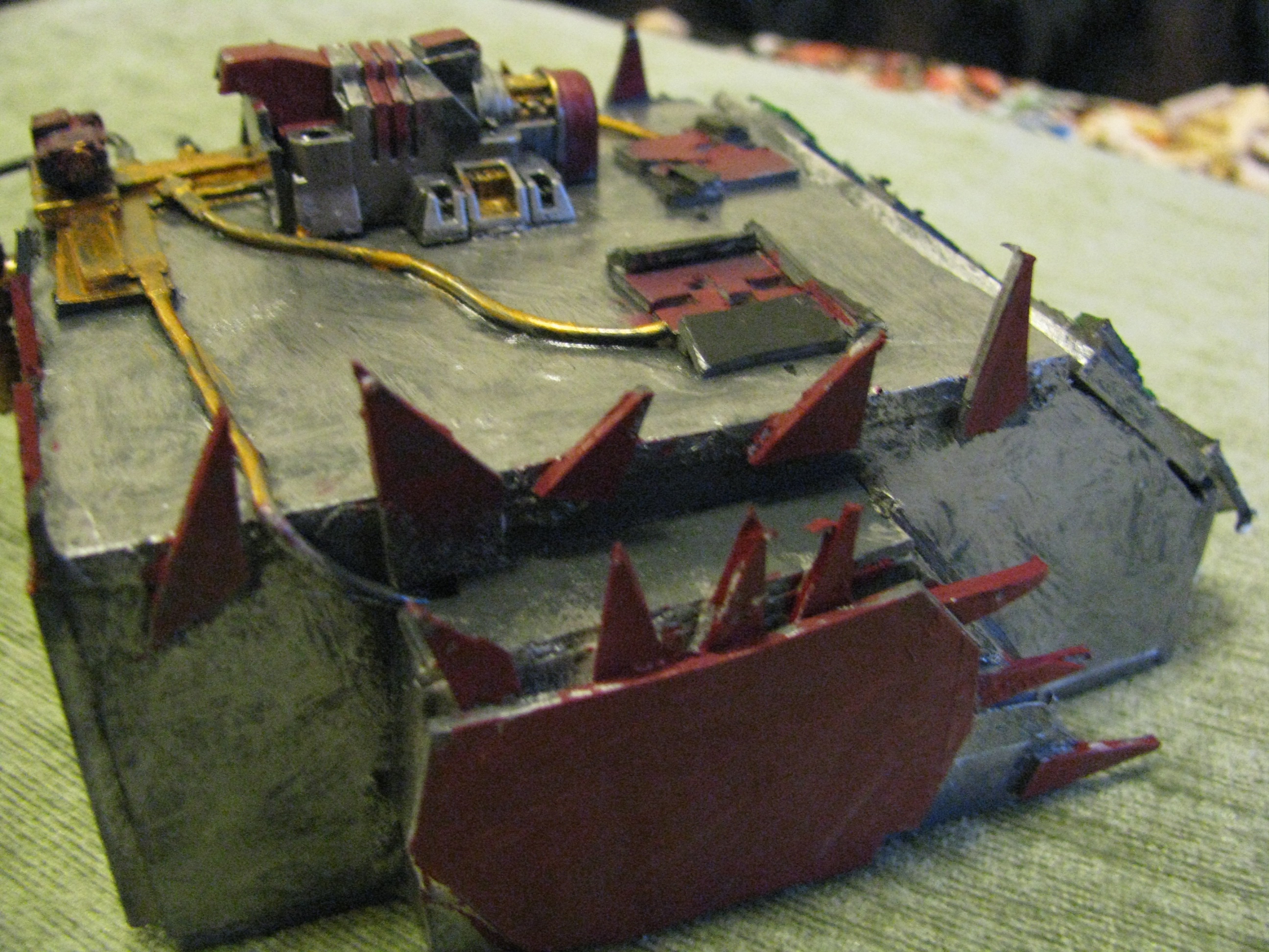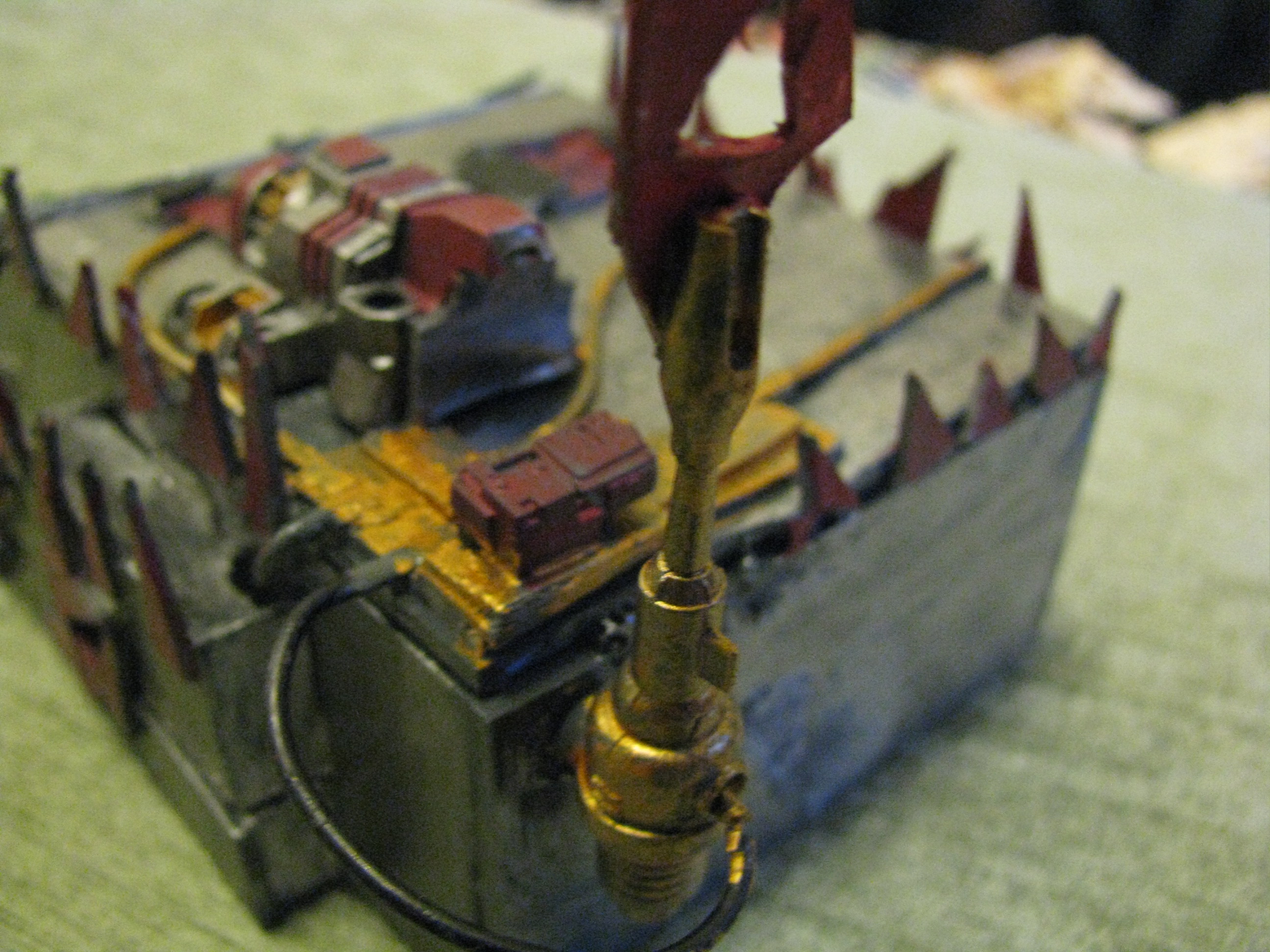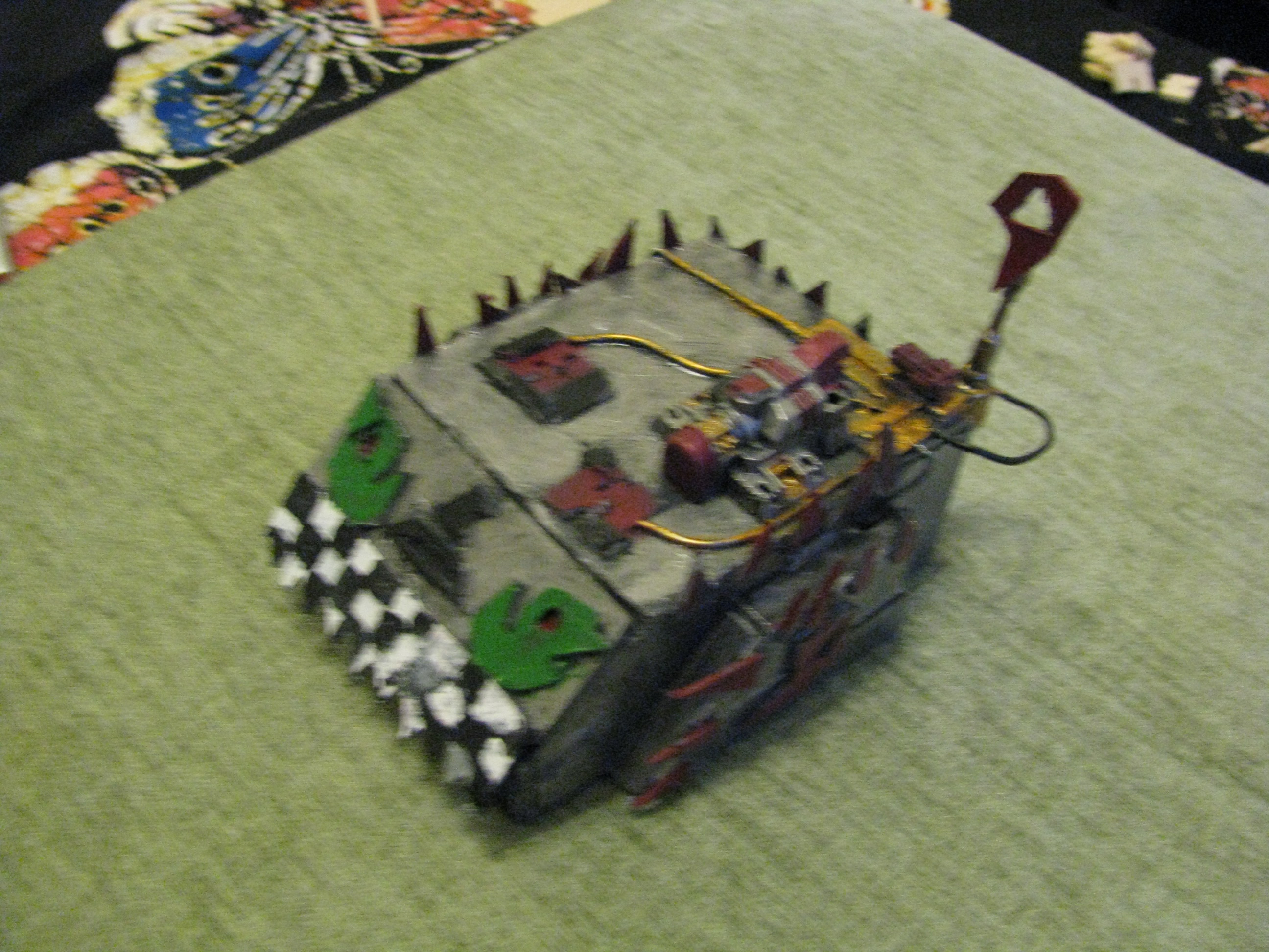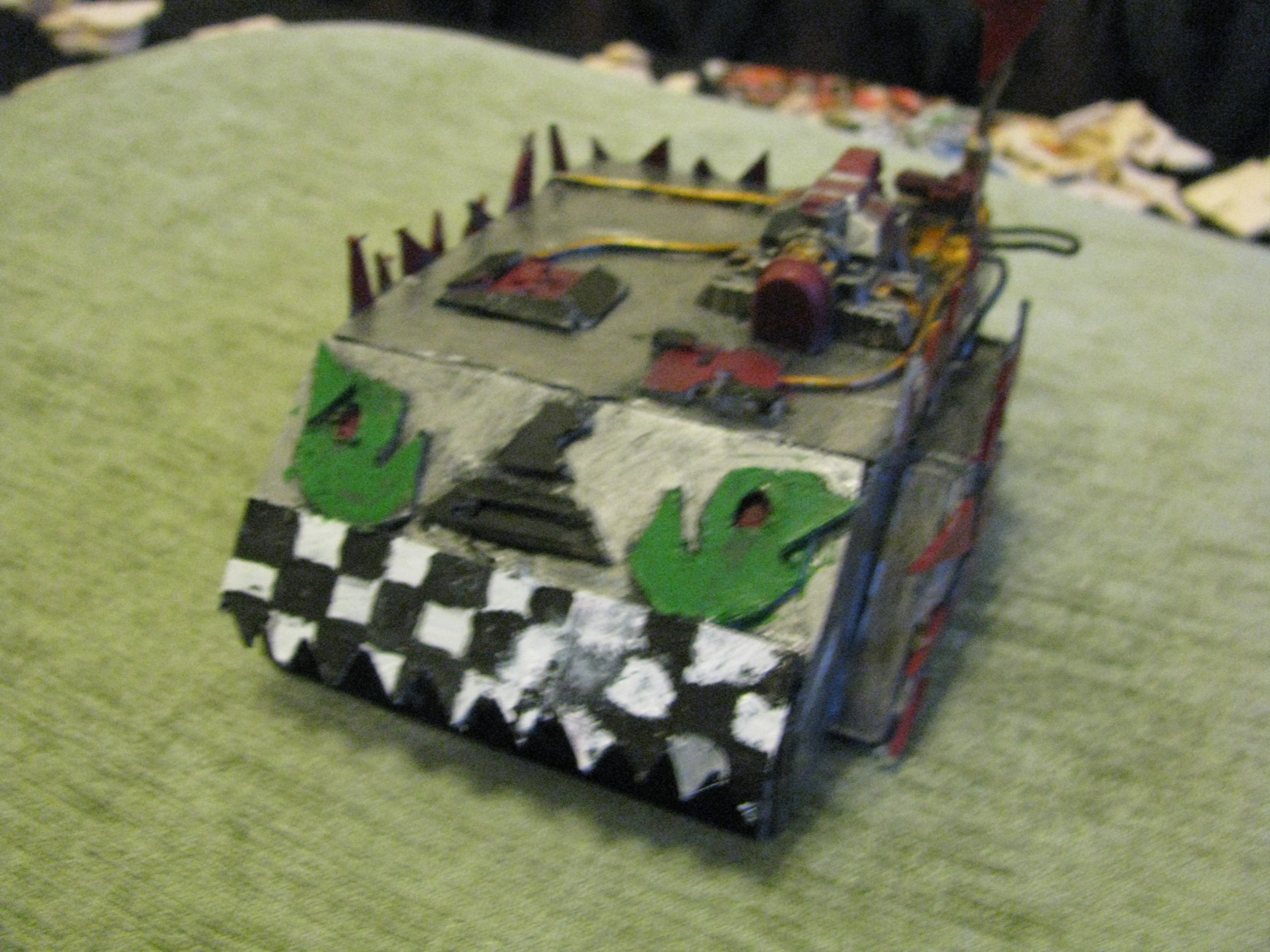 thanks everybody. Today will be doing the other track and adding spikes on the tracks. now all i have to do is add my deff dread skorcha on in to just in case i ever want to use it as a transport probaly never will though.(should i even do that) kingcracker have you painted your warboss yet i really cant make out the detail on it....sorry, but i really want to see it painted