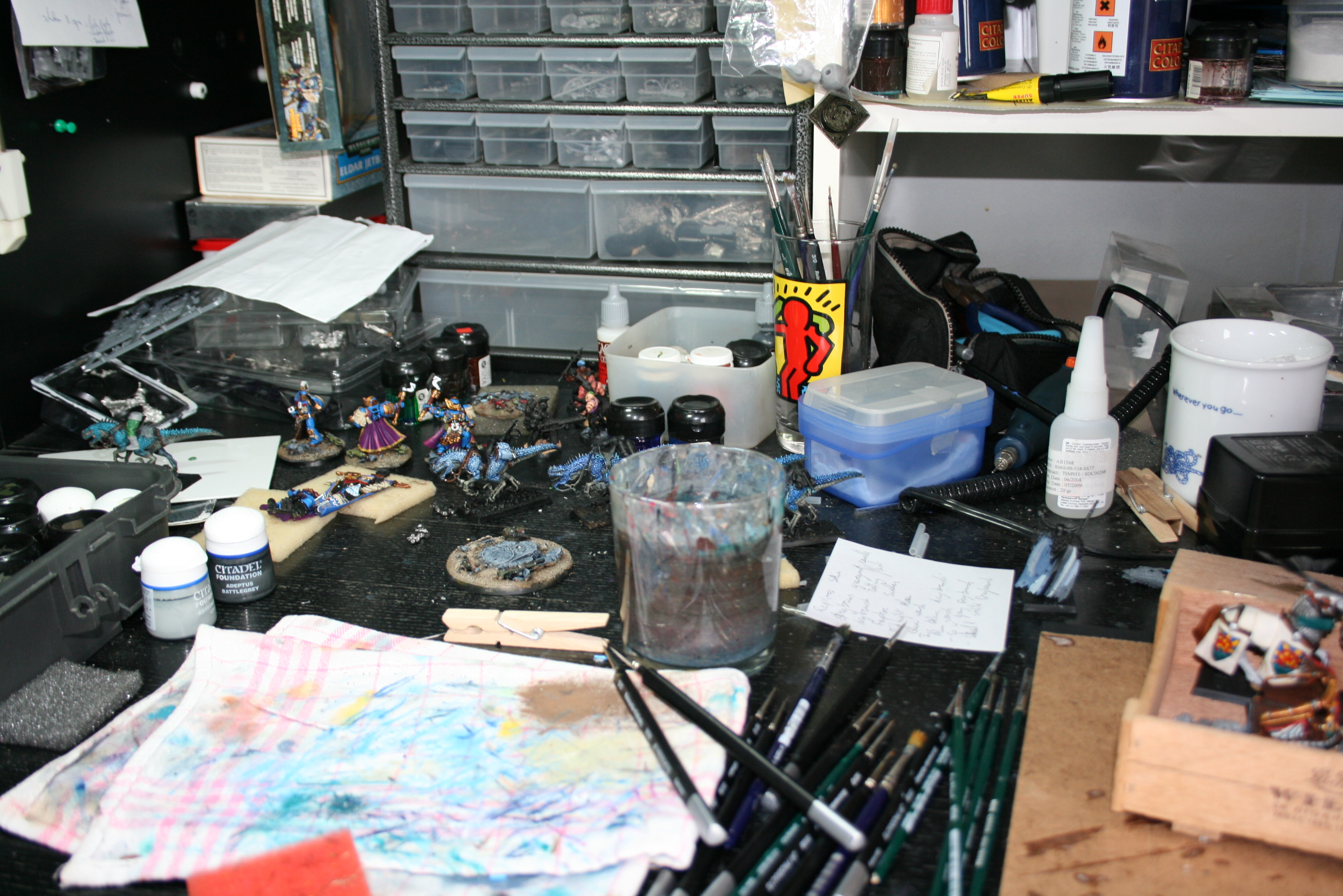 Gavin Thorne wrote:Mine fit into a large shoebox. Whatever models I'm currently working on go in a small foam padded plastic case that fits right on top of the paints. Very portable, which is good since I paint at home and work.