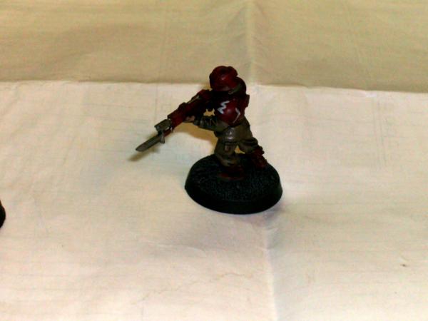 My lady has been out here for the past two weeks, but now that she's gone it's back to some serious painting. With that I give you the first half of my PCS. For my 1000 point list the power weapon guy is going to become Lukas Bastonne and I'll convert an officer out of the next box I buy. Even a two week break shows in my painting, I washed these guys way too heavily.