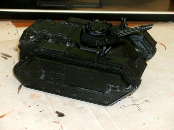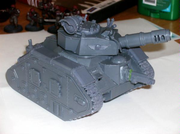 And the Russ I was working on. I was very disappointed to figure out that the heavy bolter sponson doesn't fit properly in the hull mounted slot. After I finished gluing it shut. I guess I'll just have to go back and fix it later with a little bit of drilling and pinning.