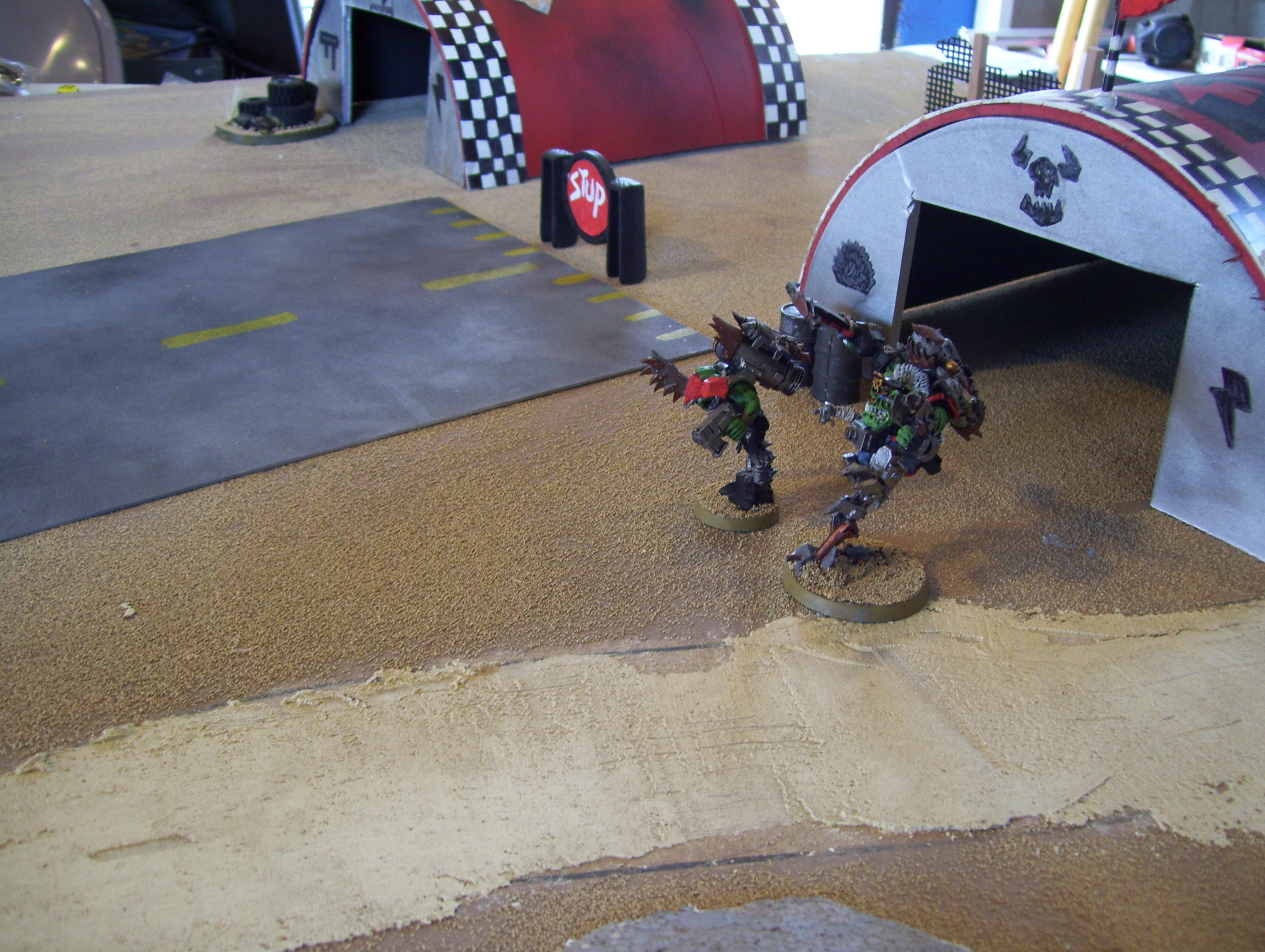 On the flank, 2nd platoon turned the corner and appeared in perfect postion to catch the Orks once they came rushing off thier objective with thier rapid fire weapons. If they could thin thier numbers enough before they got to them, the 2nd platoon just might get the objective and the airfield would fall to the Imperial Guard.