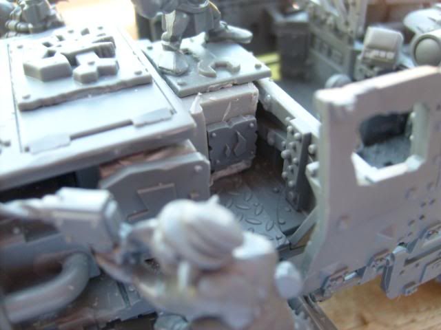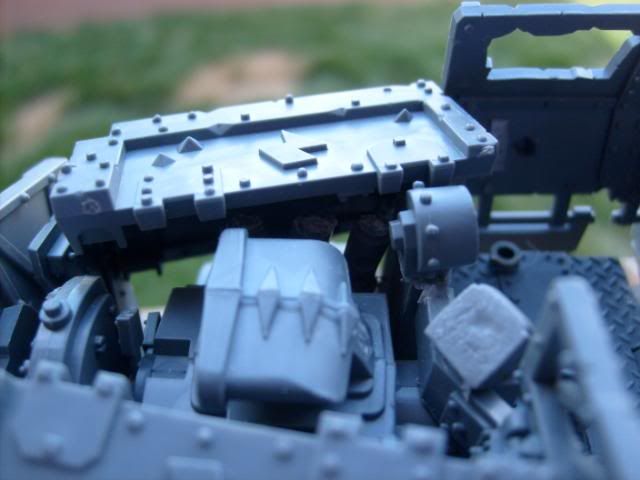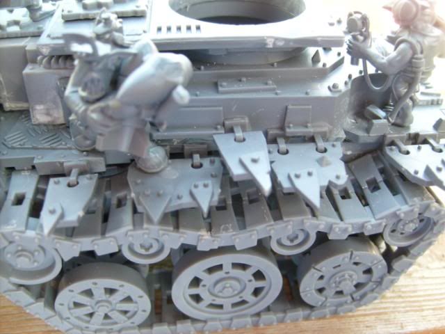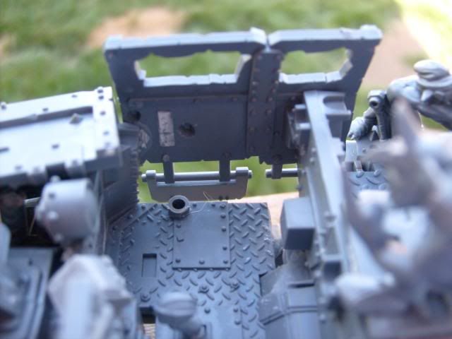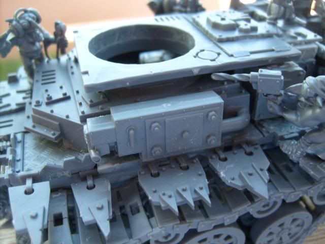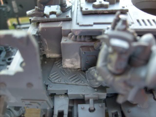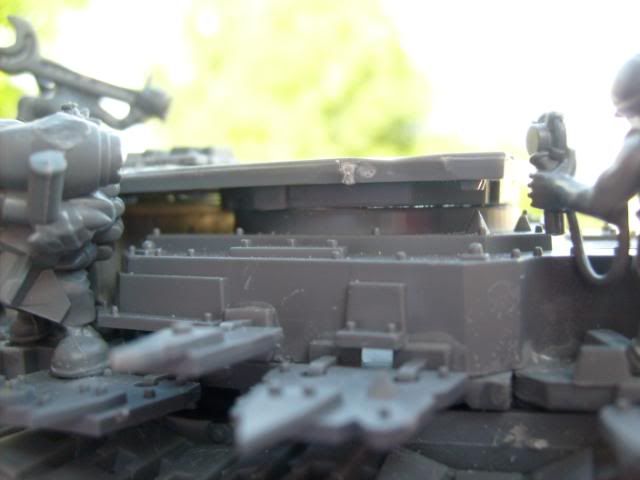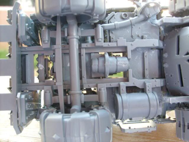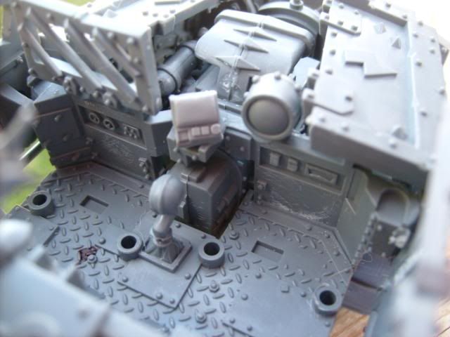 For the pipes I used a dark brown base coat then a stipling of dark flesh and a lighter stipling of blazing orange and then a very light stipling of boltgun. It gave it a real good rusted look IMHO.