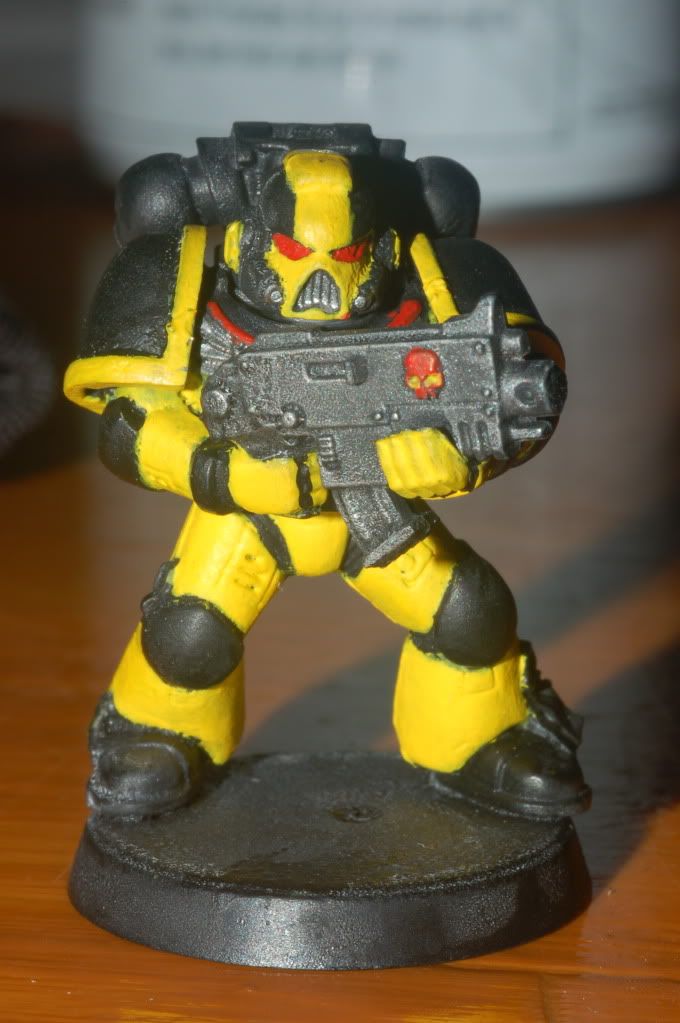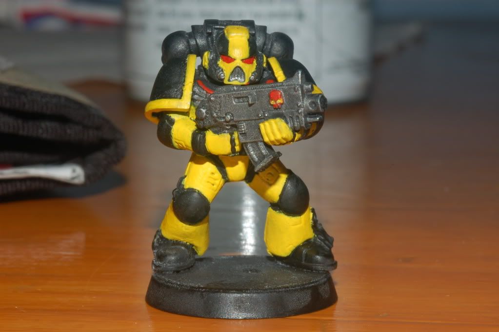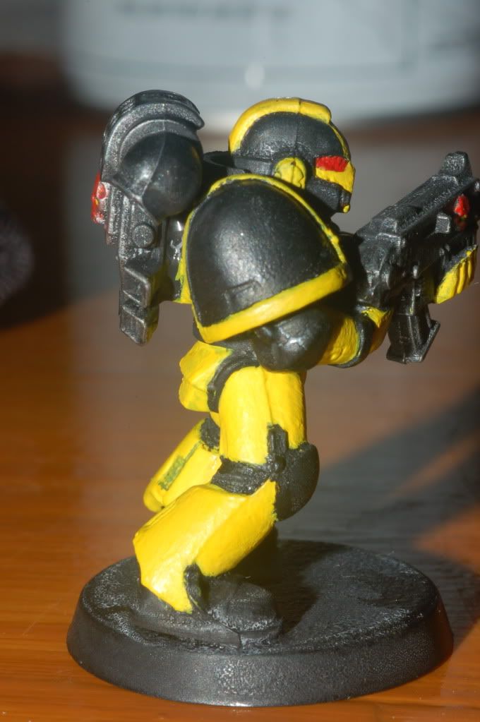 I will post in this thread when I have pics of em. Automatically Appended Next Post: I think Im going to switch back and forth between solid yellow helm with black and strip and mixed black and yellow with yellow stripe, just to mix it up so all my troops dont look the exact same.