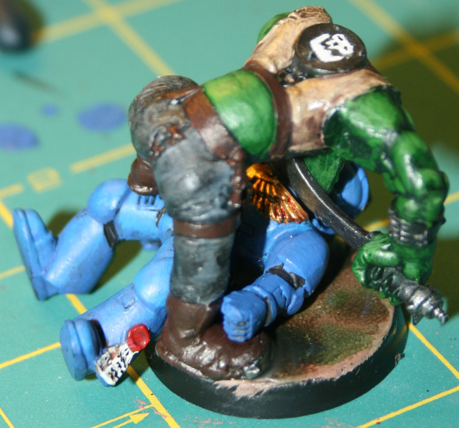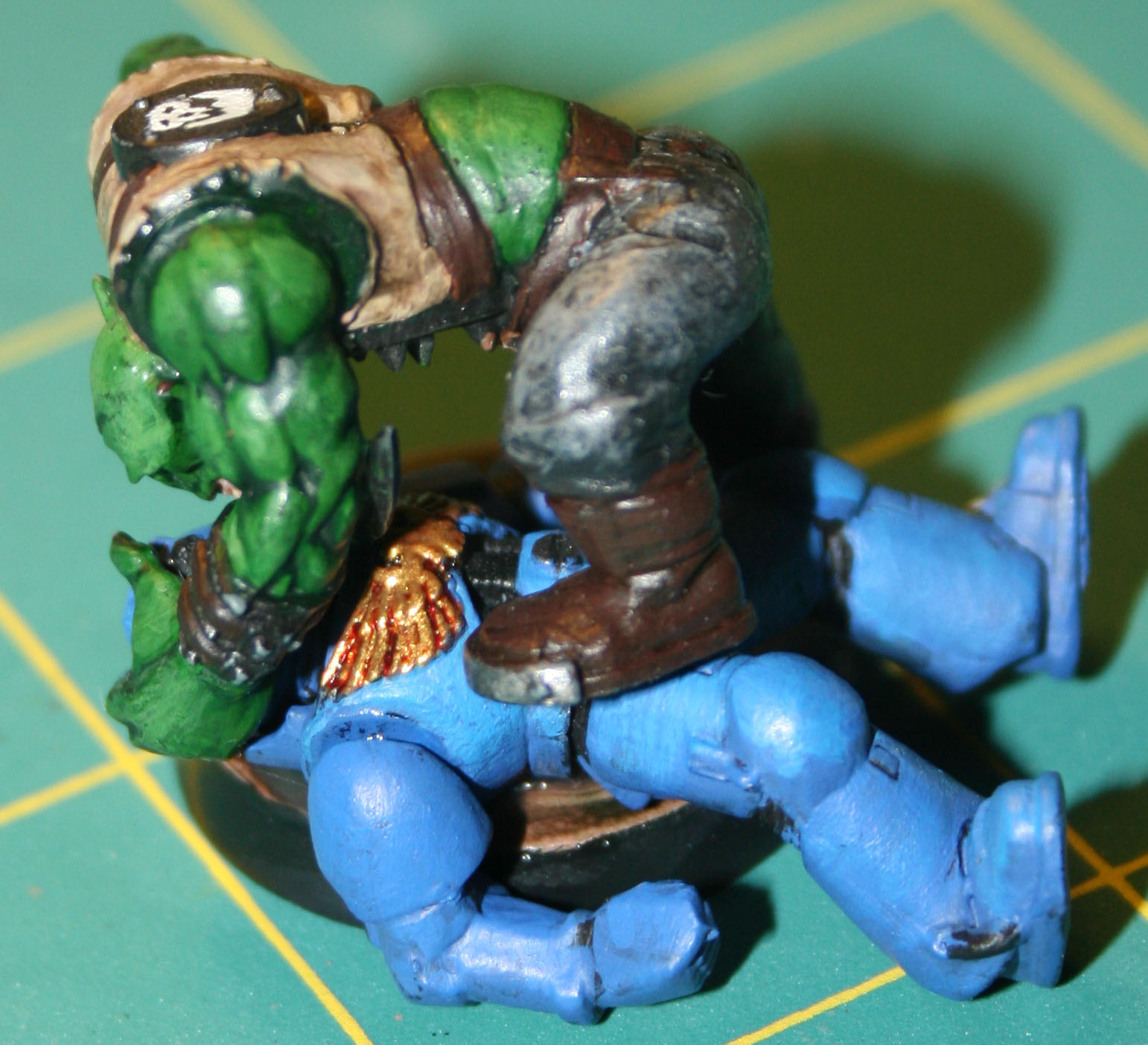 Lumpy wrote:@ZeinEizoku - Great Suggestions. I'll have to give that a try when I'm done with this one. Might take a little bit as I'd want to pick up a box of skelies from the fantasy line for part of the conversion. And ork posture is atrocious you're right. It's a real pain for positioning the orks head too as there really isn't enough room between the ork and the SM for it to go where the sculptor intended for it too.