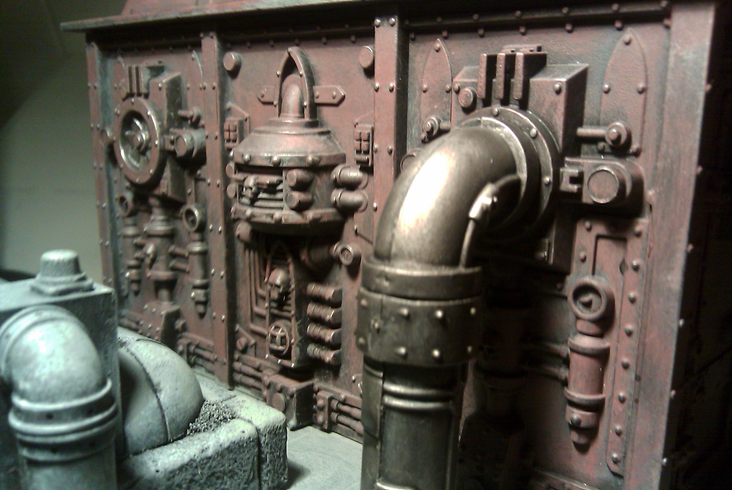 ok well just a short story about this one. I was having an ADD moment trying to finish my altar and started surfing Armorcast's site . When out of no where I see this sediment collector, perfect for water effects. I have been toying around with water effects and wanted to do a fountain, but it didnt fit my over all theme. So whats the next best things?? A freakin water pump station. So I went to my local GW which is run by a really cool dude ( side note, he hooked me up with the zombie ) thanks Will, and picked up movement trays and a mechanicum building and voila a zombie infested city water pump system. WARNING dont drink the water!!!!!
