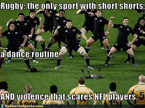 Rugby football is like American football without the pretty colours and the padding, and the constant stops.