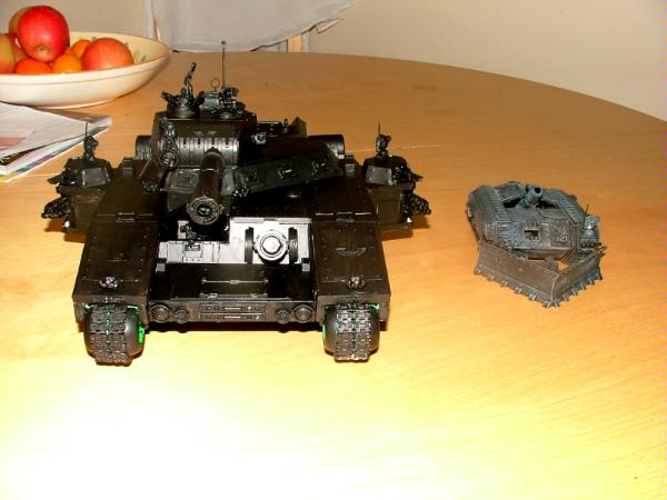love this! is it bigger than a standard baneblade? oh and proabably too late, but you could buy some brass etched imperial eagles quiet cheaply considering from forgeworld. they look good