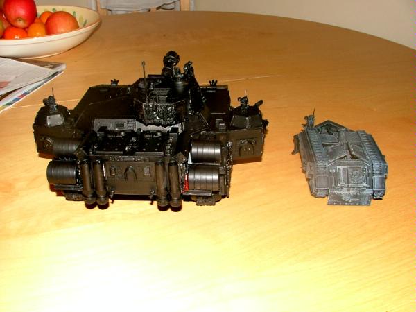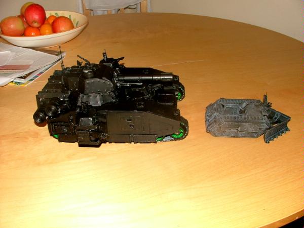 Only difference is that it's slightly wider in the tracks (about 1cm) to account for my chunky wheels and foamcore (4.5cm rather than 3.5cm, IIRC); it is modelled on the FW Mars Pattern, though, rather than the plastic kit, so I suppose if that's slightly beefier, then yes again. I was thinking of calling it an Arkurion pattern BB and seeing if anyone twigged