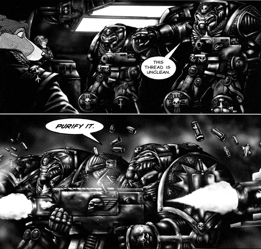 Ahhhh my eyes and my ears! You evil evil man Wll I know now who wil NOT be reciving any mercy when Amragedon shows up! Anyways back on topic, not my musical flavor but each to his own taste, Im sure someone likes this music(Slaanesh cult members most likly) PURGE THEM BROTHERS