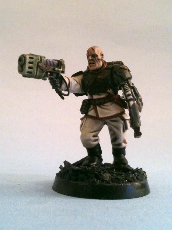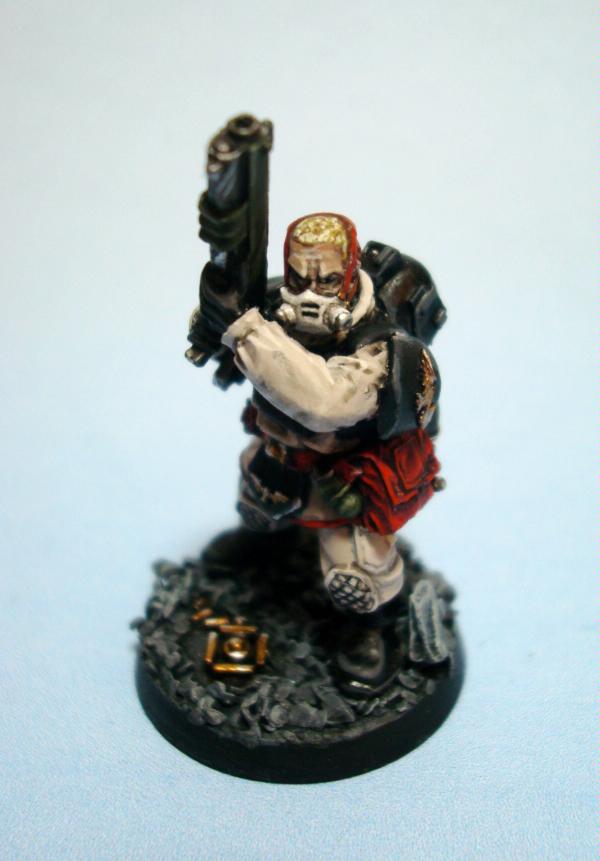 not sure about the plasma pistol or the scares on the face, when this mini is finished i will try out a different cam, coz i dont think this one is doing the job. Automatically Appended Next Post: Finished the Vet Srgt,