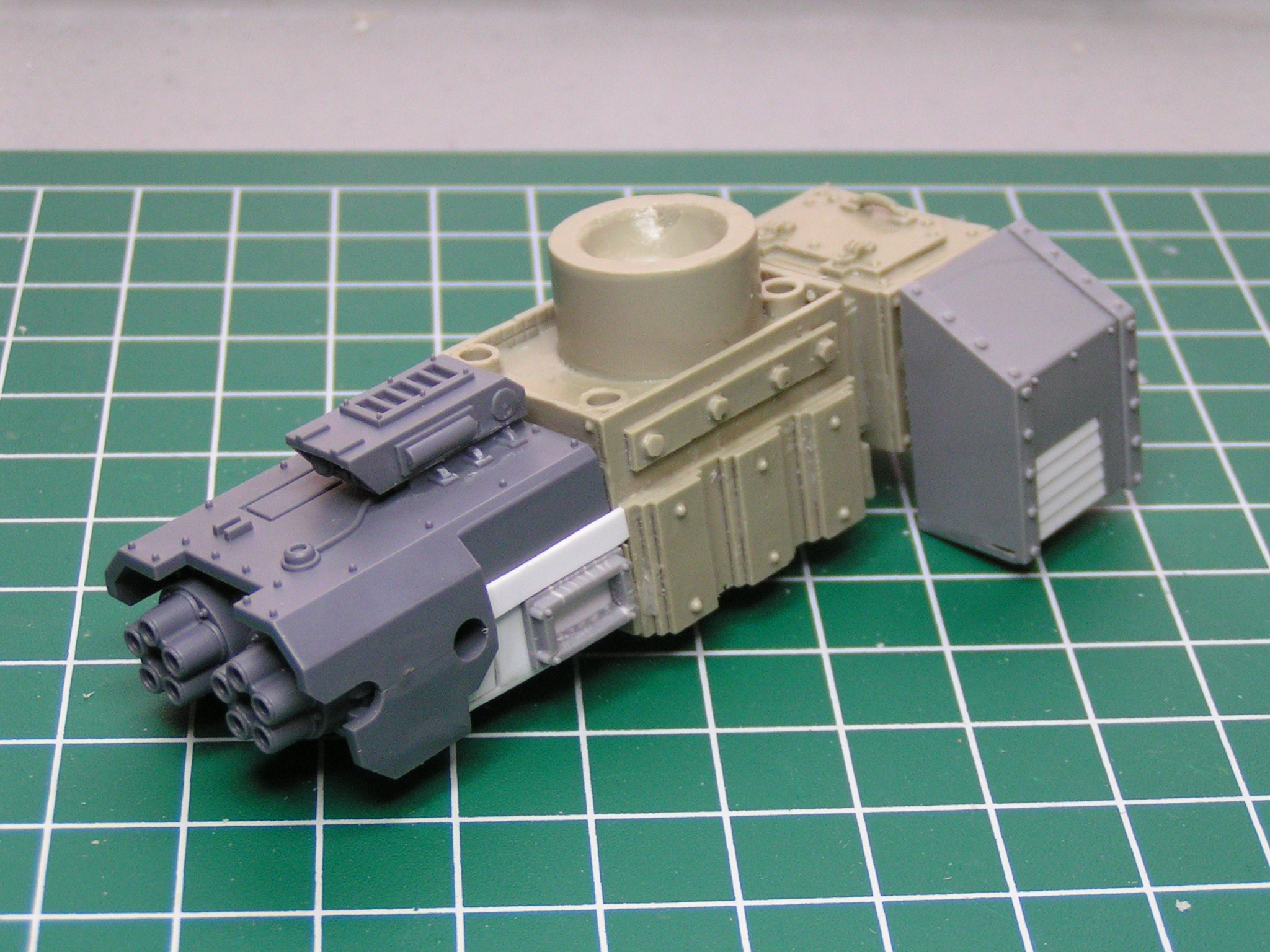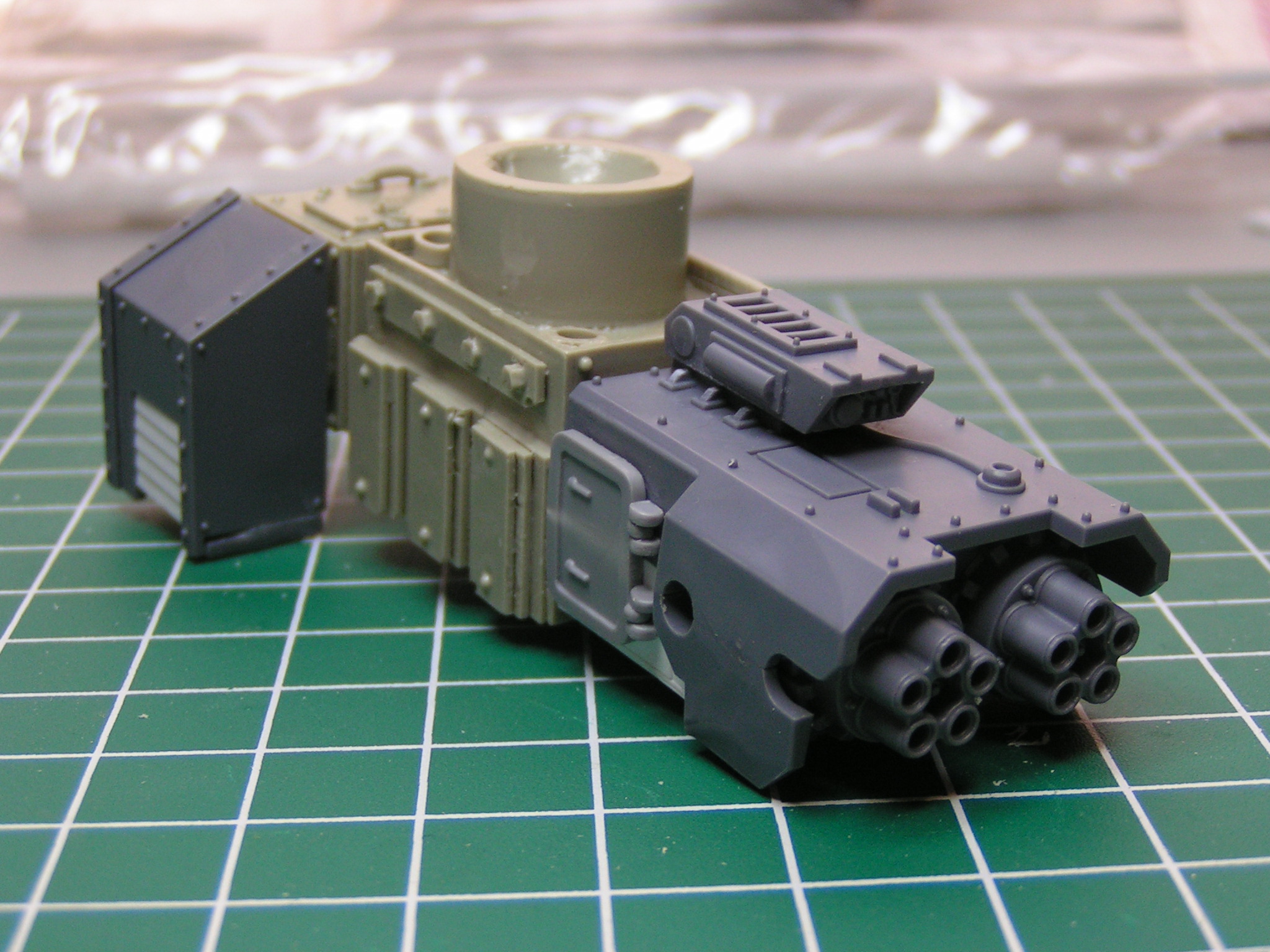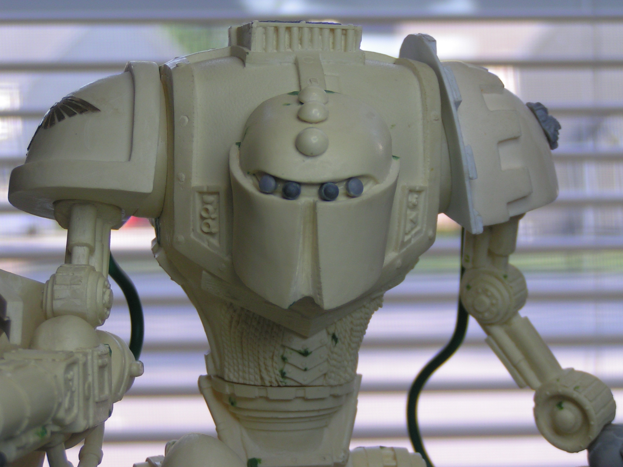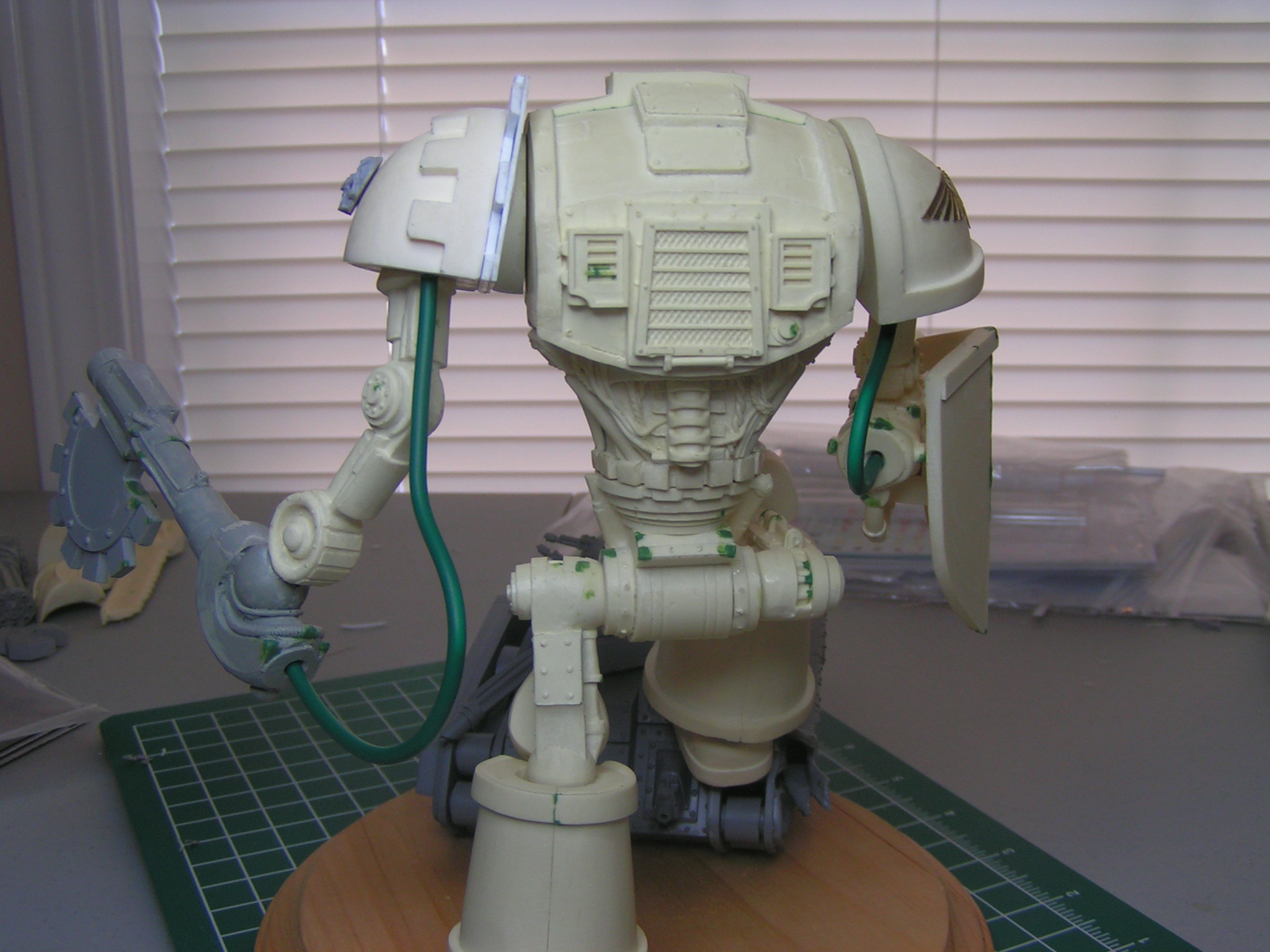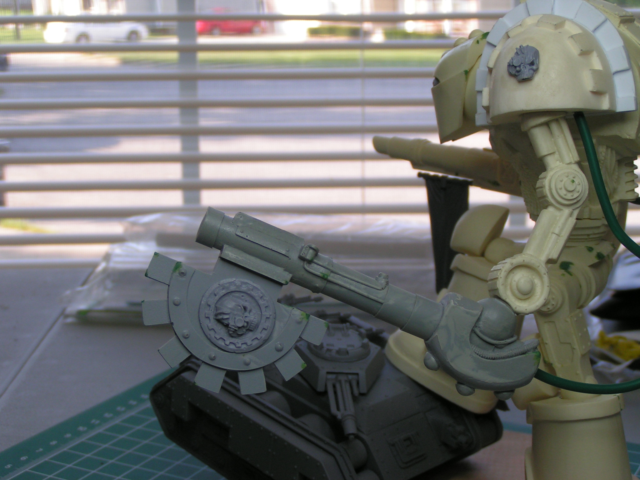 Here's my first quick update. All I've added so far is a brass Imperial Eagle to the left knee, power cables to each arm, and a banner to the cannon arm. Let me know what you think. I hope to have this guy completely built by the end of the week.