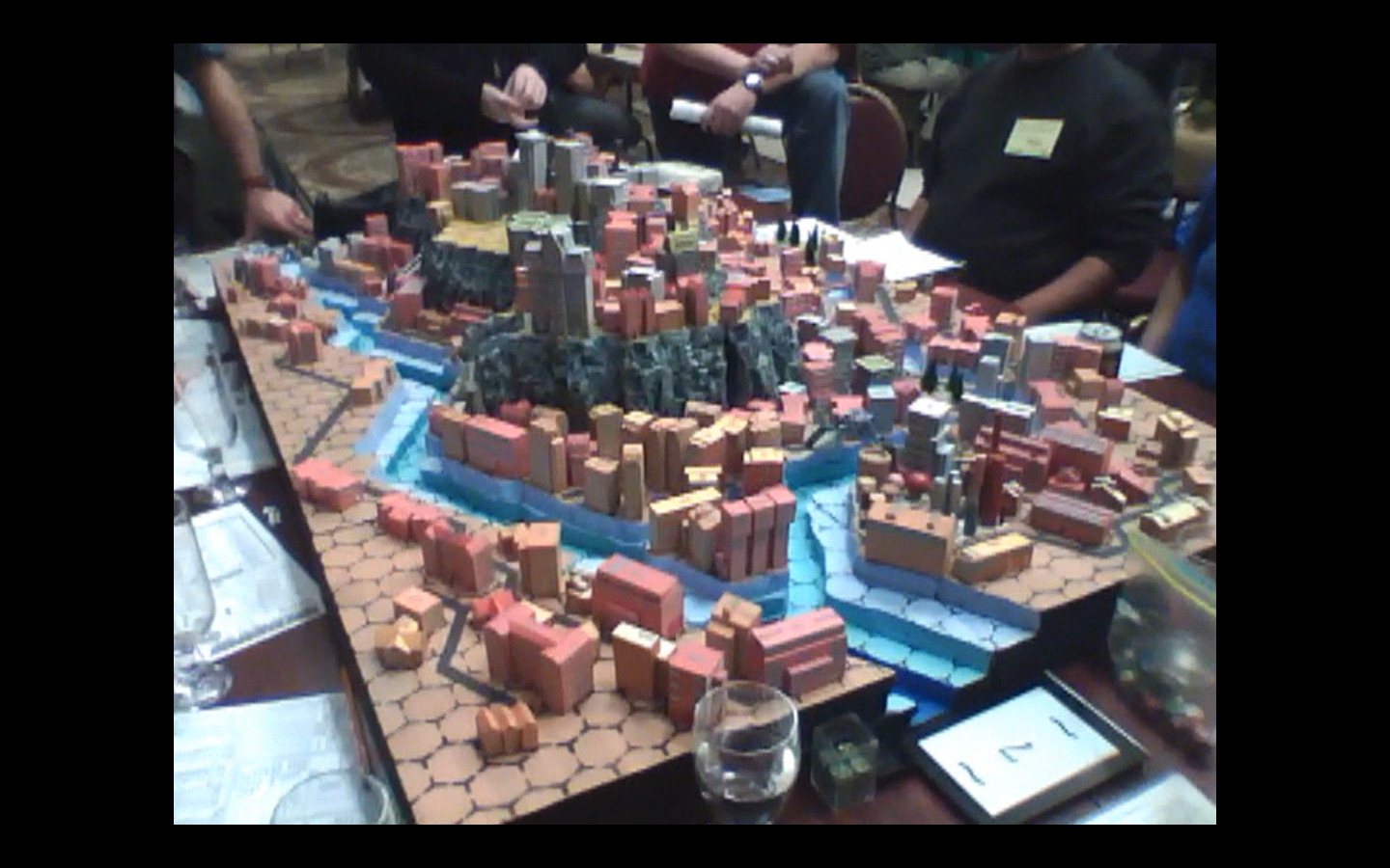 I play Battletech on occasion, just this year at "Hot Lead" this insane fellow did a Battletech scaled map of Quebec City with a little over 100 buildings. See pics: