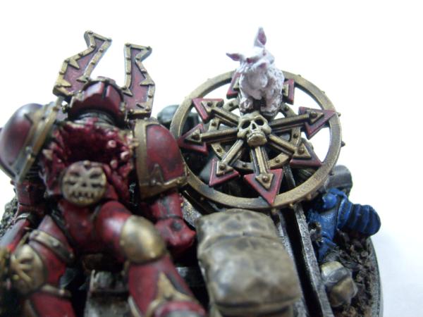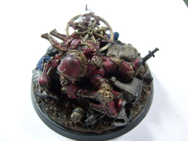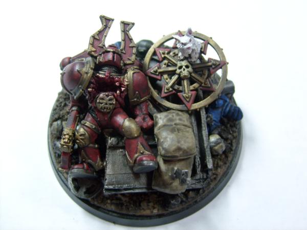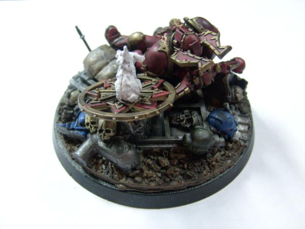 Also, make a chaos lord in black armour, and magnetise all his limbs. On his first wound, take off both arms. On his second wound, take off his legs and stick him right on the base. And on the final wound, he dies.