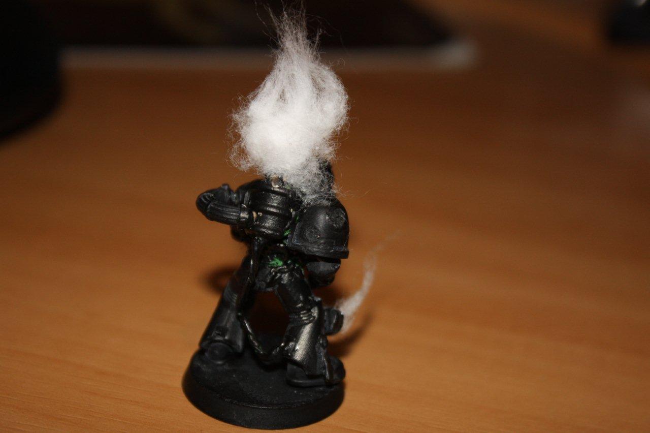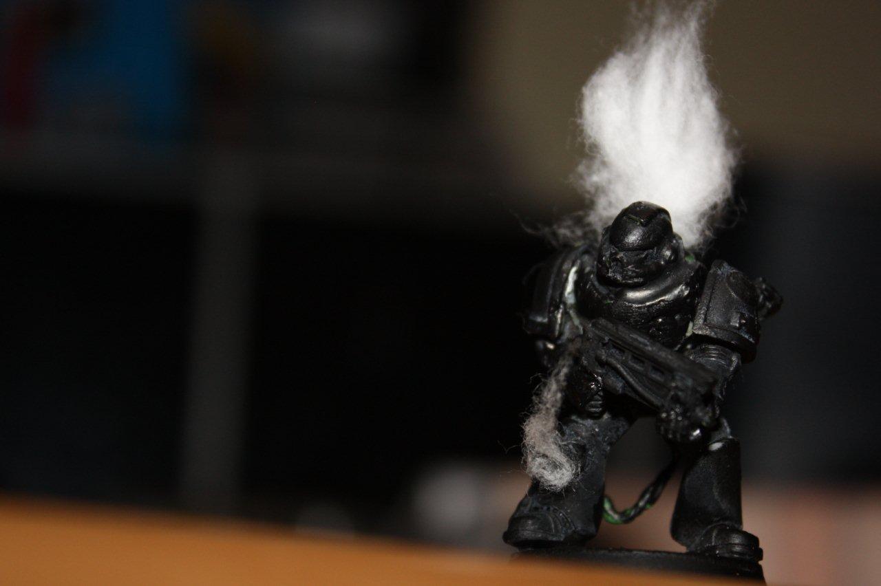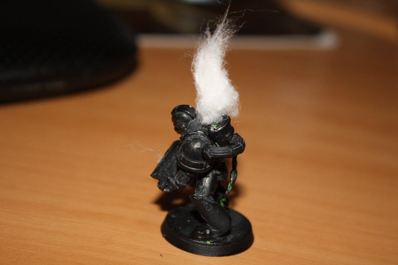 Alright, I went into the city the other day and visited a hobby store to get some ideas. There I came across some miniature buckets that were meant to go on a model ship, and I thought they would work great as a boiler/backpack for my steampunk marines! So I bought a pack, came home and got to work. The bucket itself was just a bit too big, so I chopped it in half and stack it on that way. Then I modelled some wires out of green stuff, stuck a bit of cotton wool on it and well, I'll let the pictures speak for themselves. By the way, this is, again, a trial run, so any criticisms you have, feel free to fill me in so I can improve.