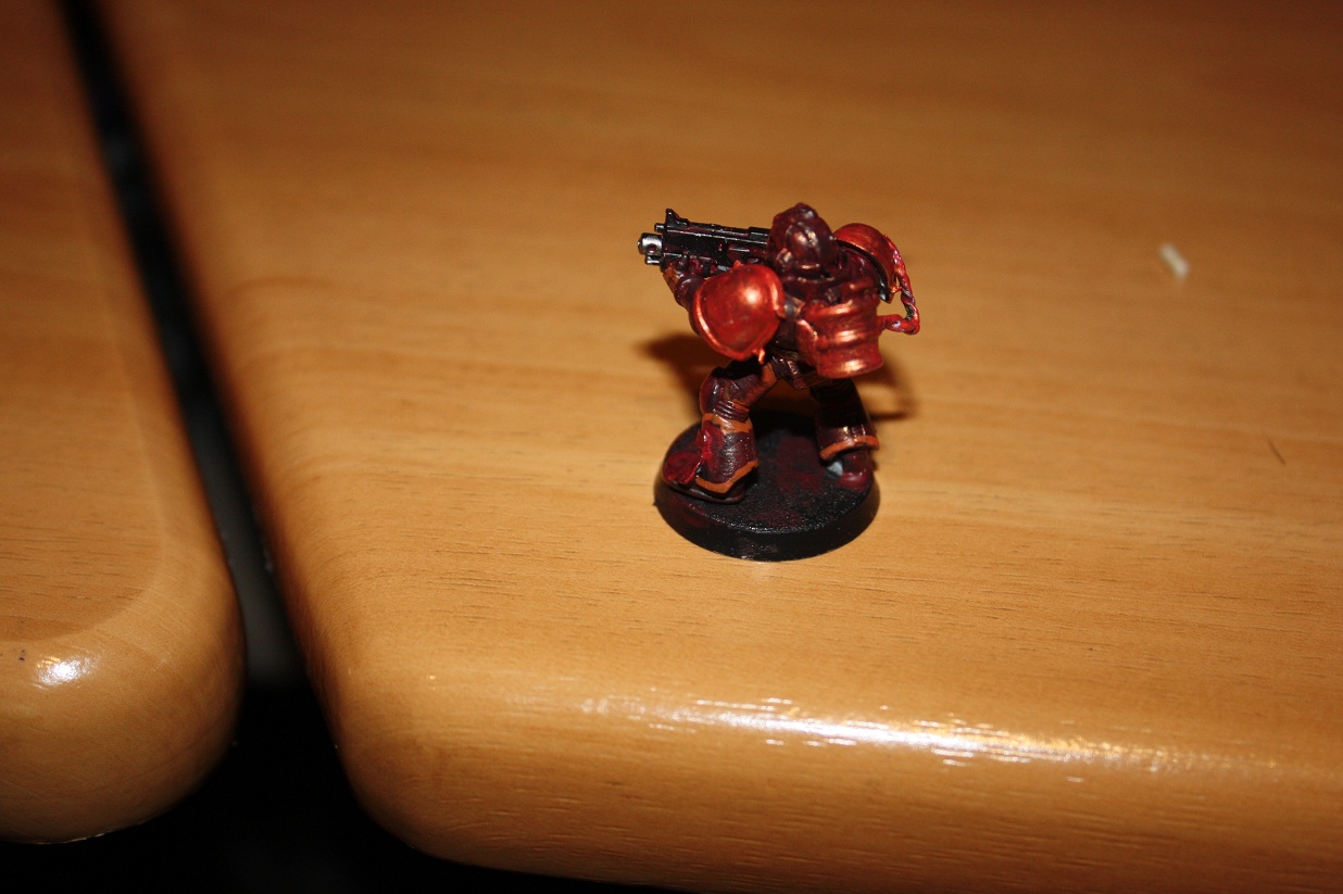 Alright, sorry to resurrect this thread, but I have updates! I haven't forgotten about this, nor have I forsaken my steampunk marines. On the contrary, I am now modifying my terminators, and trying to come up with a suitable colour scheme. I've ordered the steam knight heads from Maxmini.eu, and will be using them on my termies. I think I've found a good colour scheme, but what's your opinion? Also, my lovely girlfriend contributed to my worthy cause; she provided me with a bag o' (clockwork) bits she ordered from the net. Lovely surprise, to see all those tiny cogs and gears and screws ready to be glued onto my miniatures. I haven't used any yet, apart from some little screws to go on the end of the greenstuff wire, but below is a picture of the potential steampunk goodness!