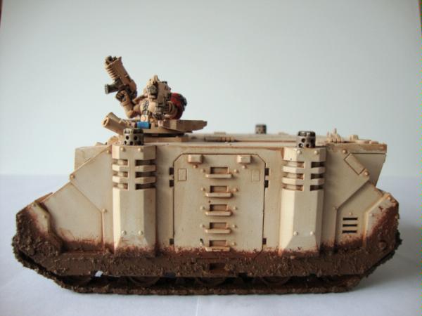 Cool, I really like the mud effect! But most of all I like the idea of a marine popping out with his stormbolter from out of Rhino hatch, I'm totally going to borrow that idea!