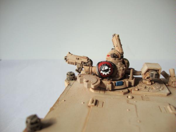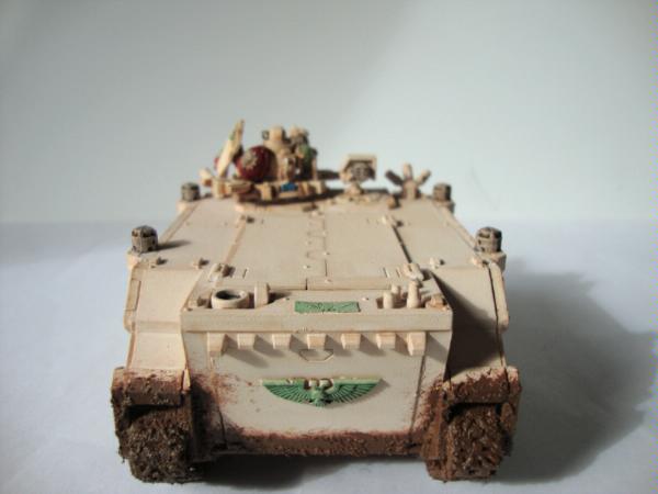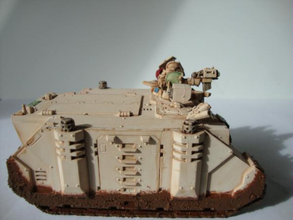 Now the last one of the second rhino I of course have not finished painting the shoulder pad thats still wip  M y rhinos are a bit plain but its a gamming army and they have lots of lovely mud. I cant freehand at all which is why you see forge world brass on my tanks I really need to make some nice arrow stencils to put on the rhinos to paint in or something but I suck at making things like that to. Might get one of my mates to help me make them.