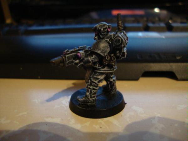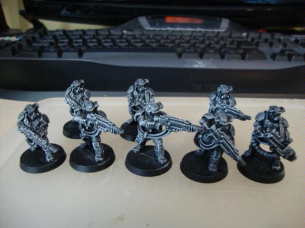 Automatically Appended Next Post: Ok ive been painting all mornning and so far the remainder of the squad apart from the sgt have now been sprayed and painted black and given their drybrush of codex grey and white.