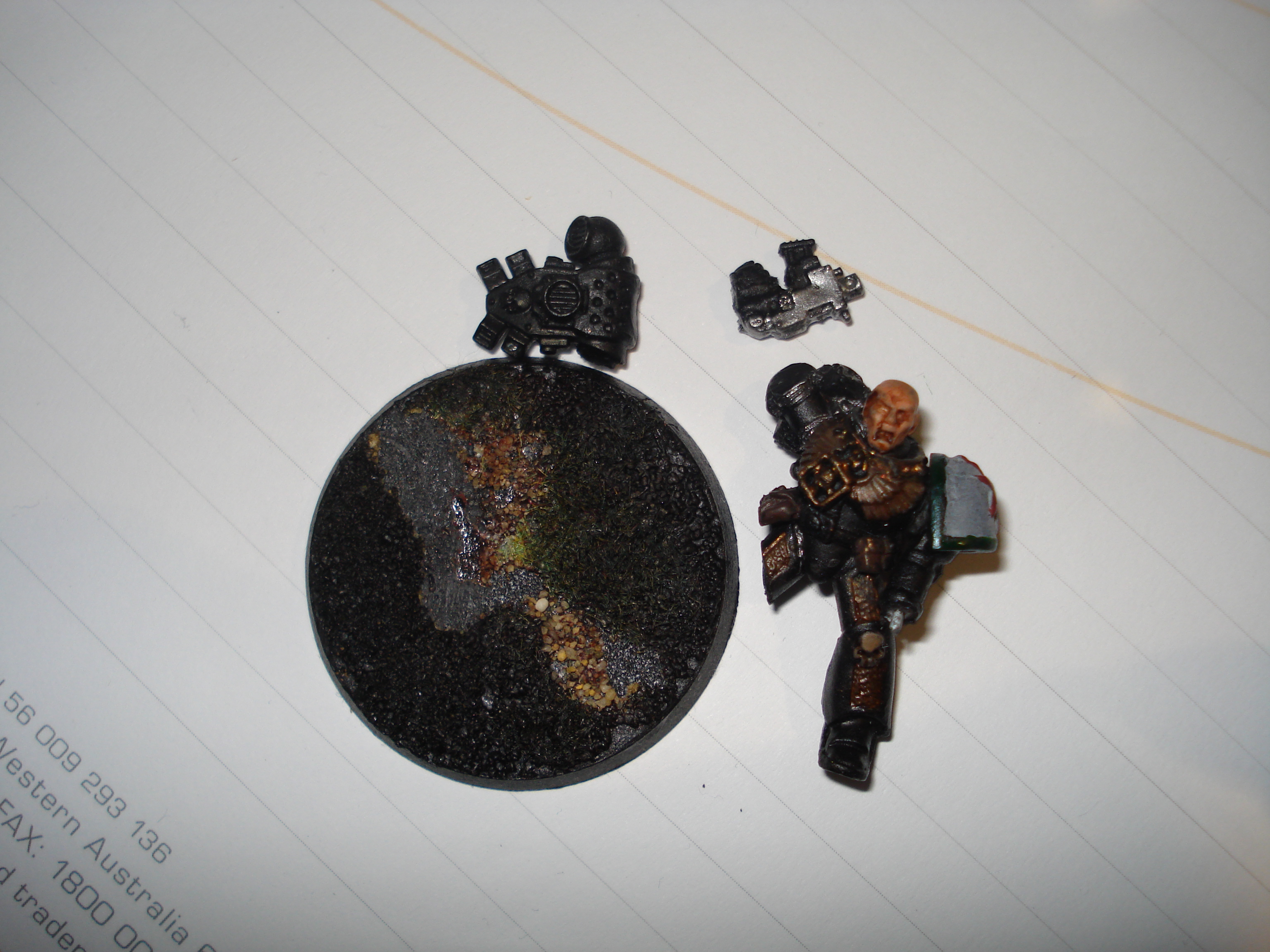It's going to represent a Chaplain caught in a blast, making a final stand whilst missing and arm and a leg...