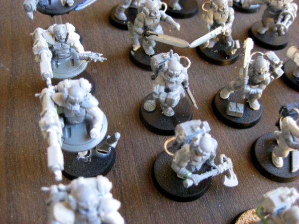 very nice, the bloodletters look really cool, i would like a closer look at them, even if they arent painted yet. what parts did you use for them? Automatically Appended Next Post: i kinda like the cadian heads, but maybe a switch would be interesting, i kinda like the imperial feel the cadian parts give the models, while the unusual weapon layout and droids show how the army isnt just an IG army.