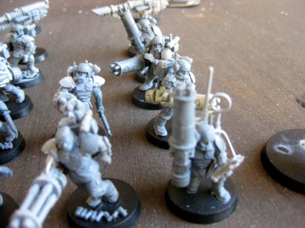 Looking good, although maybe there is something you could do to break up the Cadian-ness of the bits? Something to change the sillouette? The conversions are great but I think spreading the changes beyond grafting arms or legs alone would really take this to the next level if you understand my meaning.