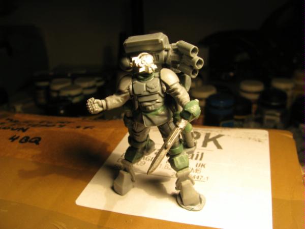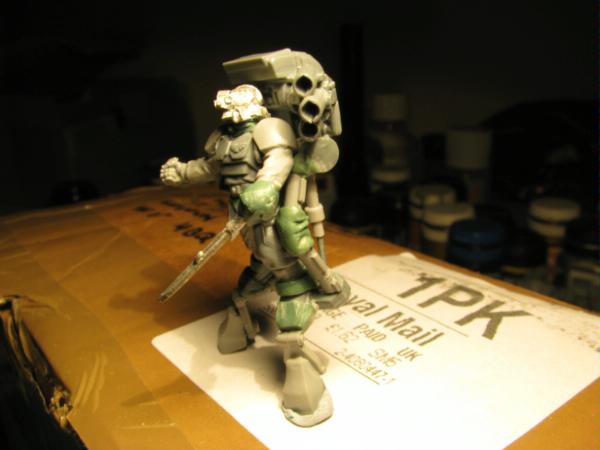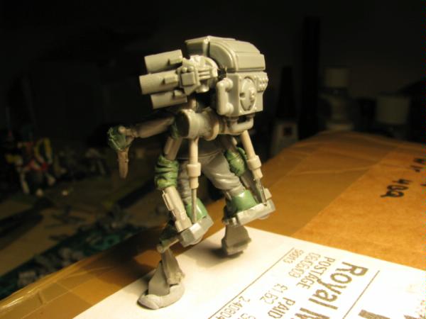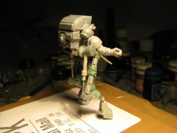 Hmm... have I played Starcraft... I think I lost about a year to it at one point  that and the expansion. Roll on SC2! On the point of the decoration on the SC Marines, I think its a little too extreme for my liking. These guys are supposed to be controlled, focused elite troopers. They need something flash to distinguish themselves, but if they go too overboard then they'd be too easy to catch and kill. For instance I was thinking that they would be in the same kind of camo scheme as the rest of the infantry, just with some helmet and shoulder markings. I might gussy up the backpacks, but again I reckon that they would be too much under the control of the specialised Techpriests to take much personalisation from the riders. I was actually thinking I might try my hand at serious/interesting weathering on the suits. If anything is going to be worn a littl earound the edges it is some wacky mechanical suit thats barely under the control of the driver @CK - I did try and fit hydraulics under the foot but I couldn't get it to work properly. It always looked too busy. The feet therefore are supposed to be relatively solid things to provide leverage and extra leg length.