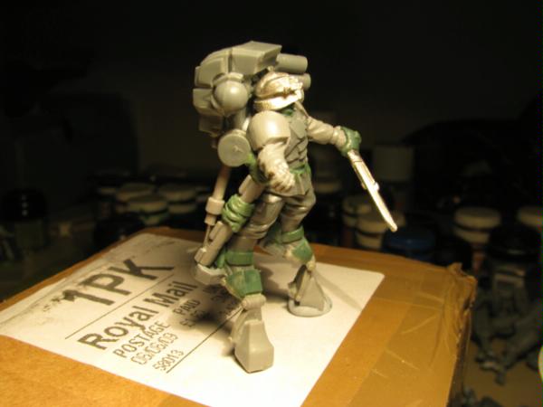 I think I'm now happy with the concept as embodied in my Sergeant model. All GSed up with joints covered and foot bindings bulked up.