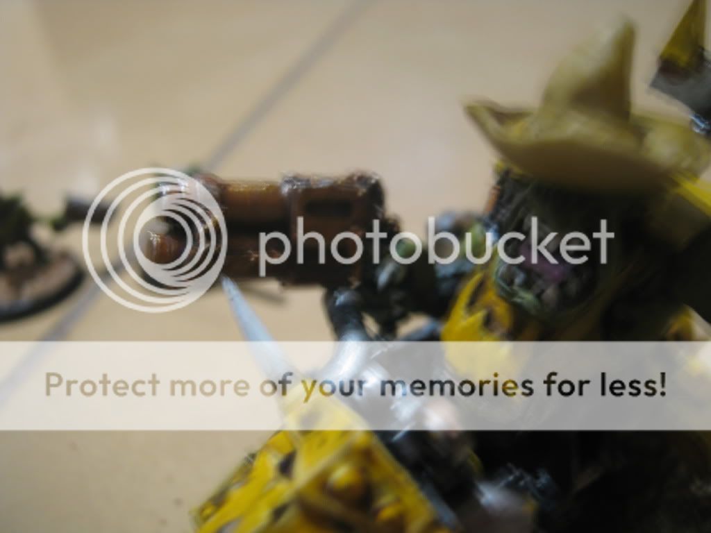 i like it! although i would maybe make one suggestion: it seems that you're mixing different Ork color schemes (bad moons, goffs, snakebite etc.) i'd stick with a single unified color scheme. i like the first pics with the yellow. i think that'd go best with you are neat theme.