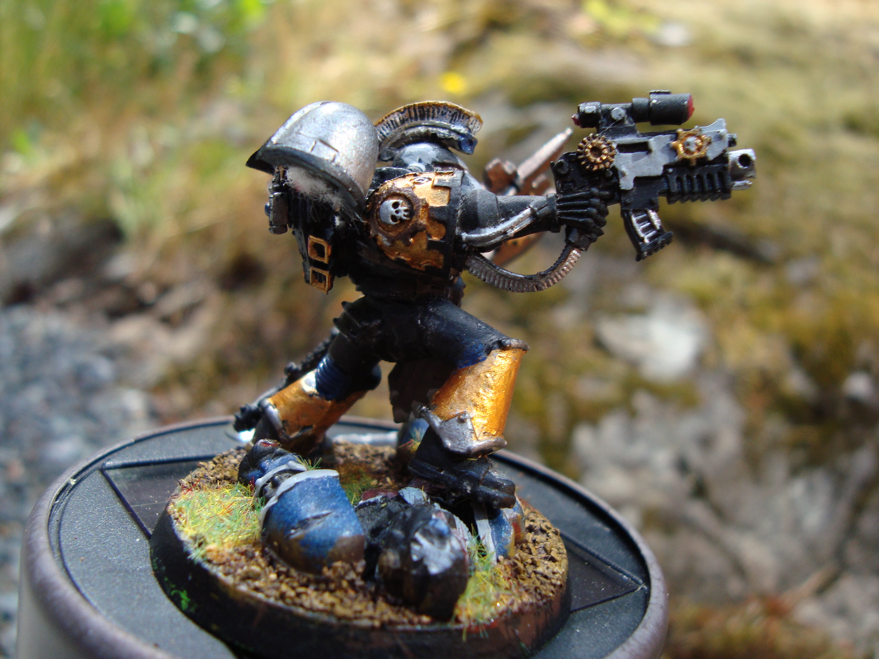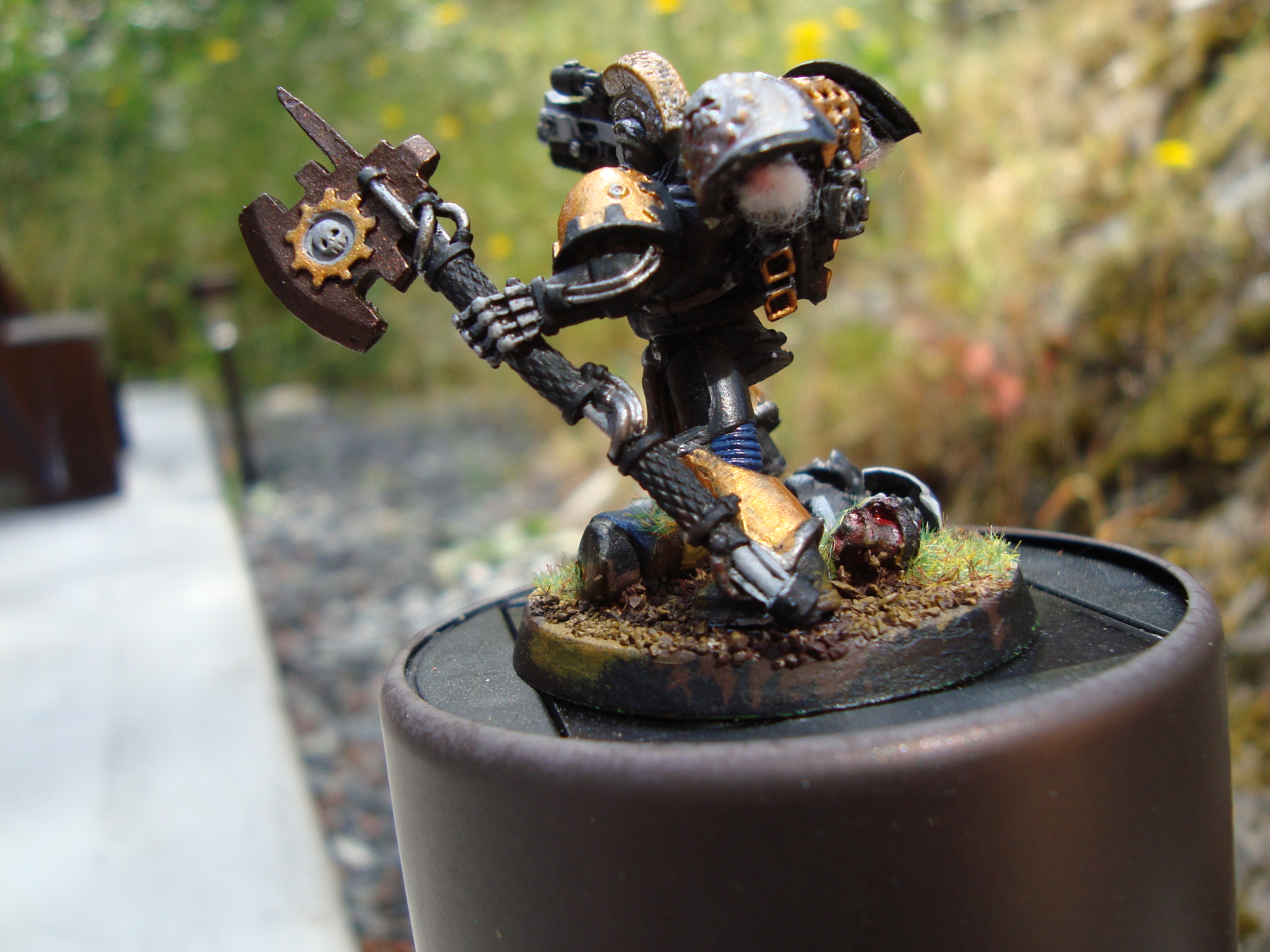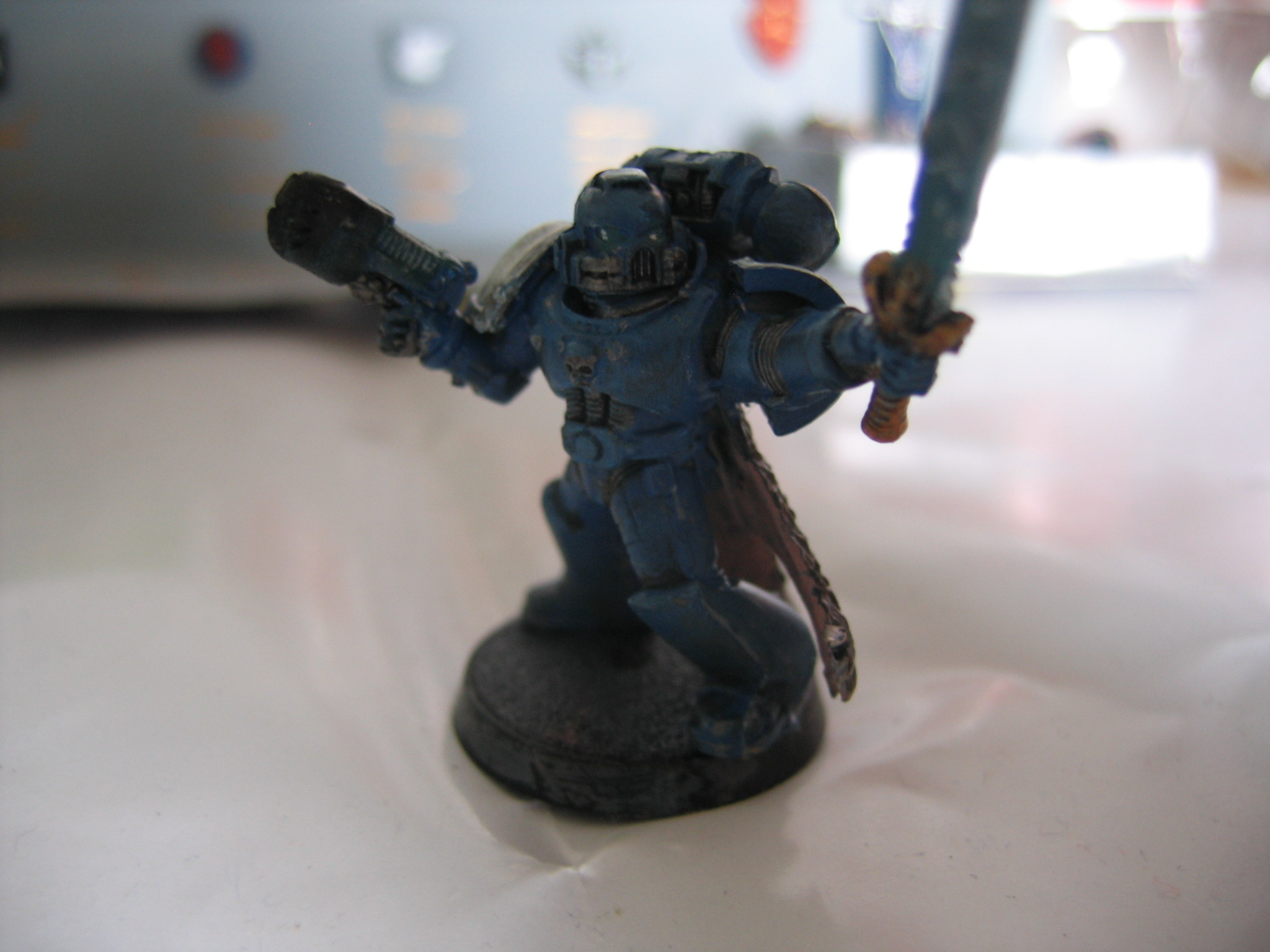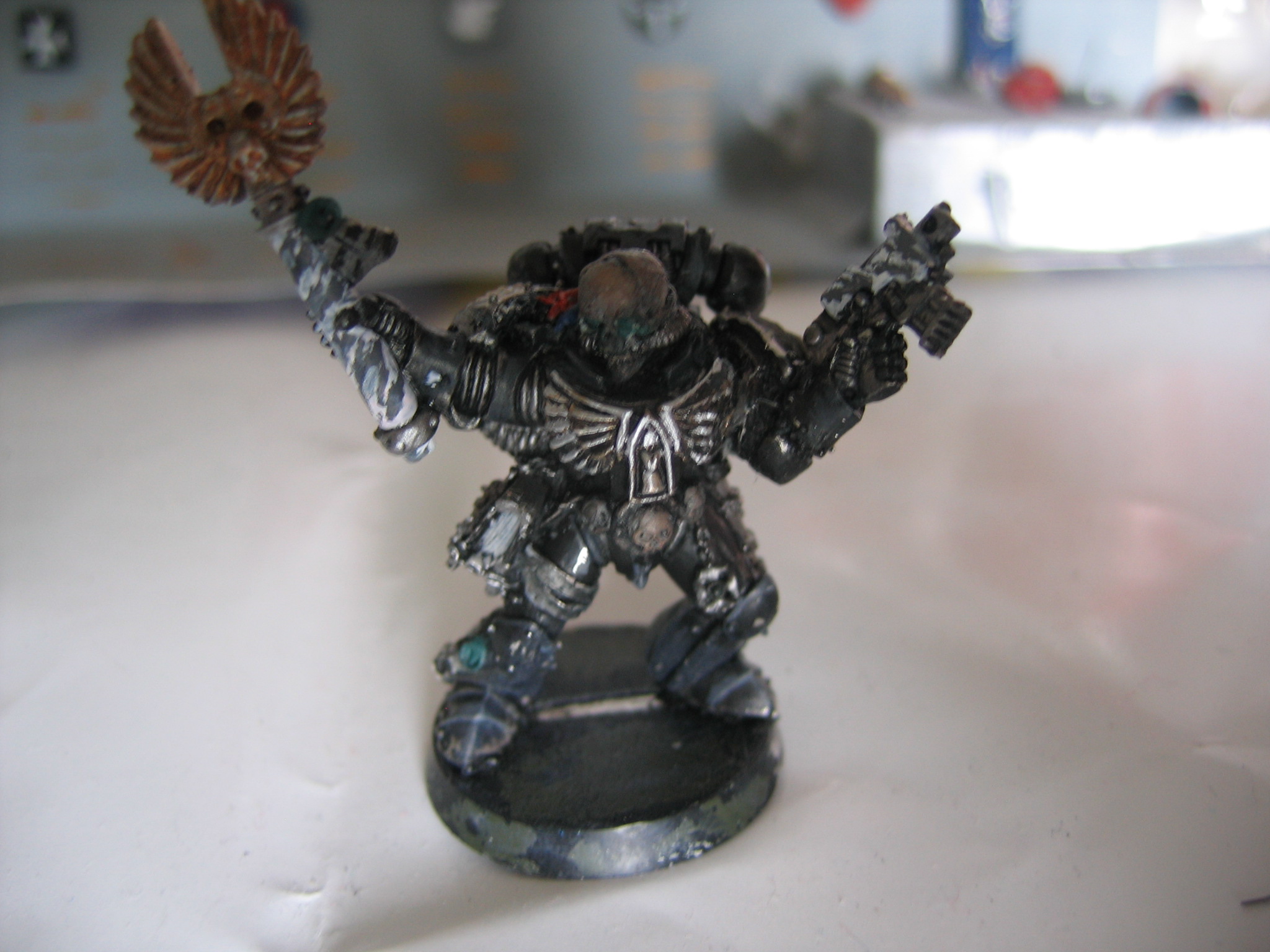 The base Model is from one of the Veterens MKI/MKII blisters. The backpack is from the Dark Angels Vet Upgrade, only I chopped off the sword. The vents are also from the DA vet upgrade, i just swapped them from different backpacks.