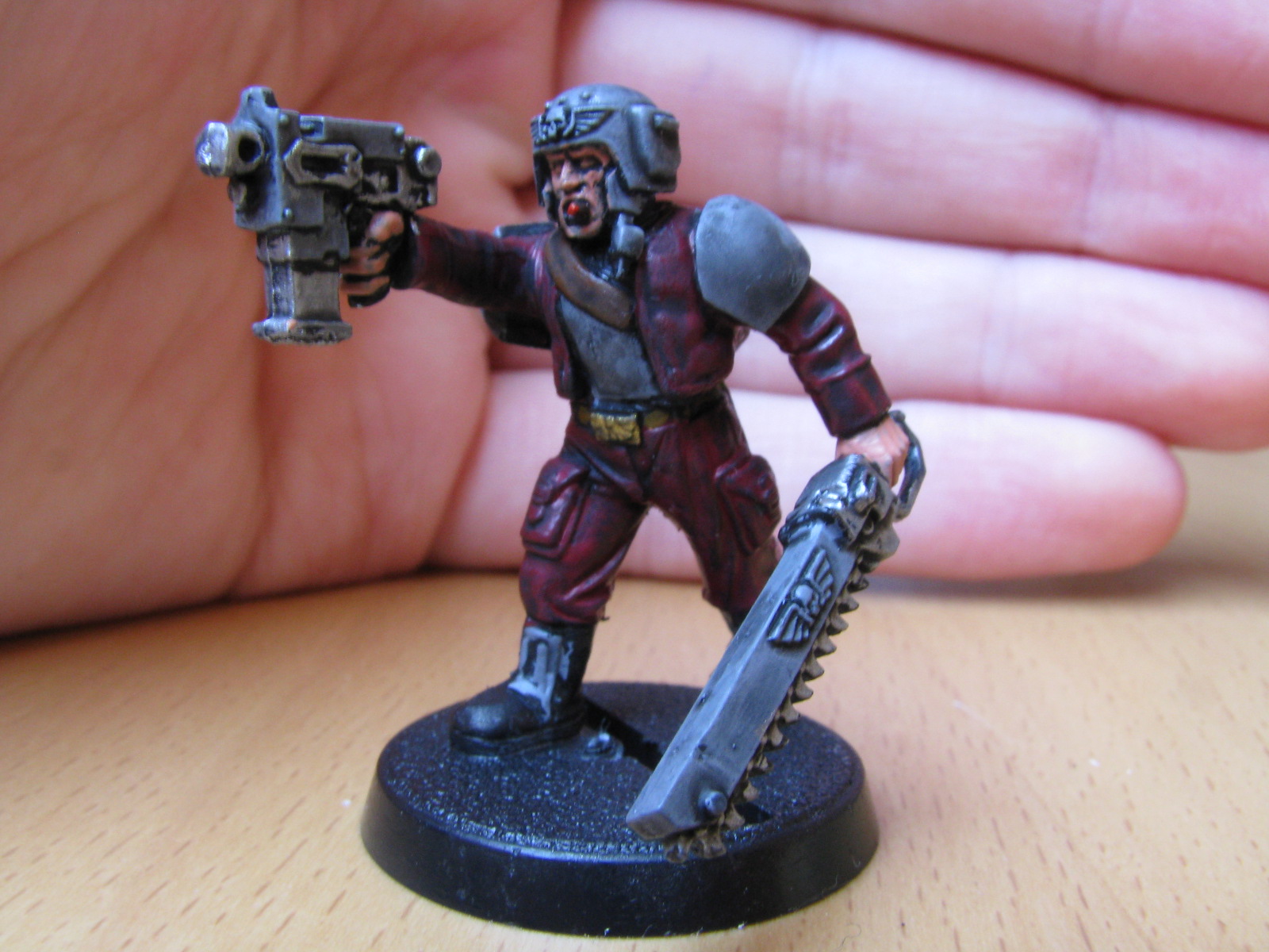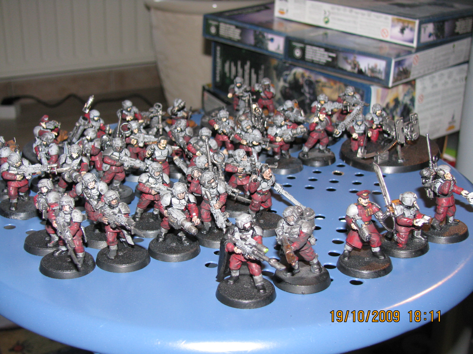 These are the classiest and most dapper Guard I've ever seen. I especially like the kitbashed Guardsmen - but why oh why are these models not based? It breaks my heart to see such good paintjobs standing on such bland, black bases.