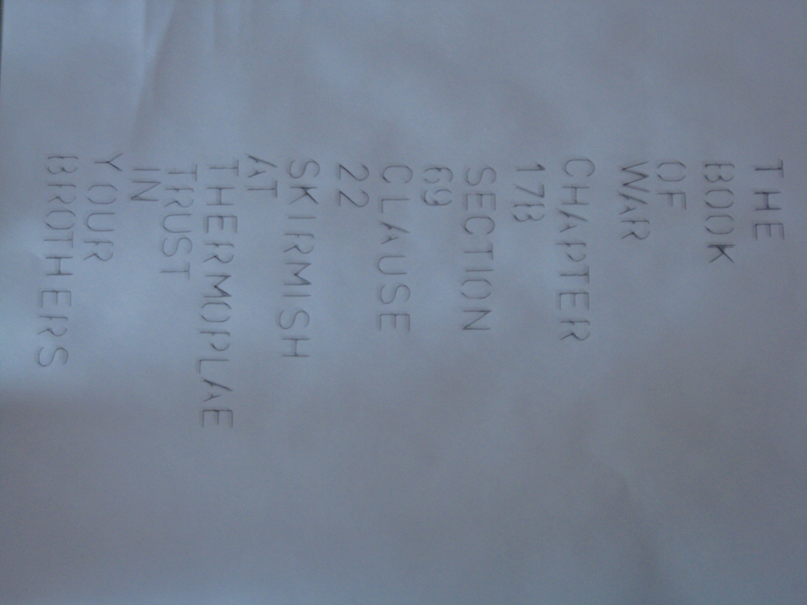 'The book of War, Chapter 17B, Section 69, Clause 22, Skirmish at Thermoplae, 'Trust in your Brothers'