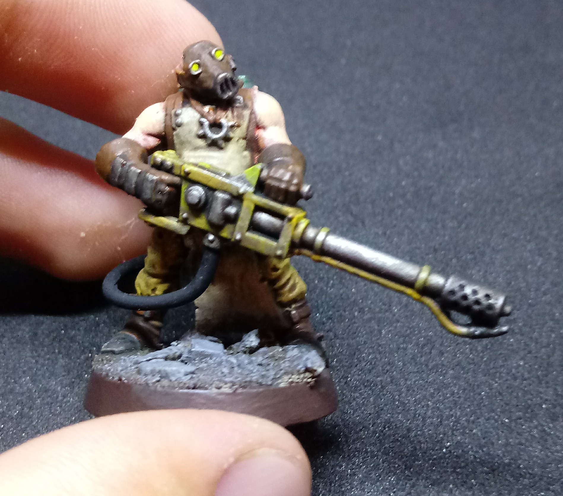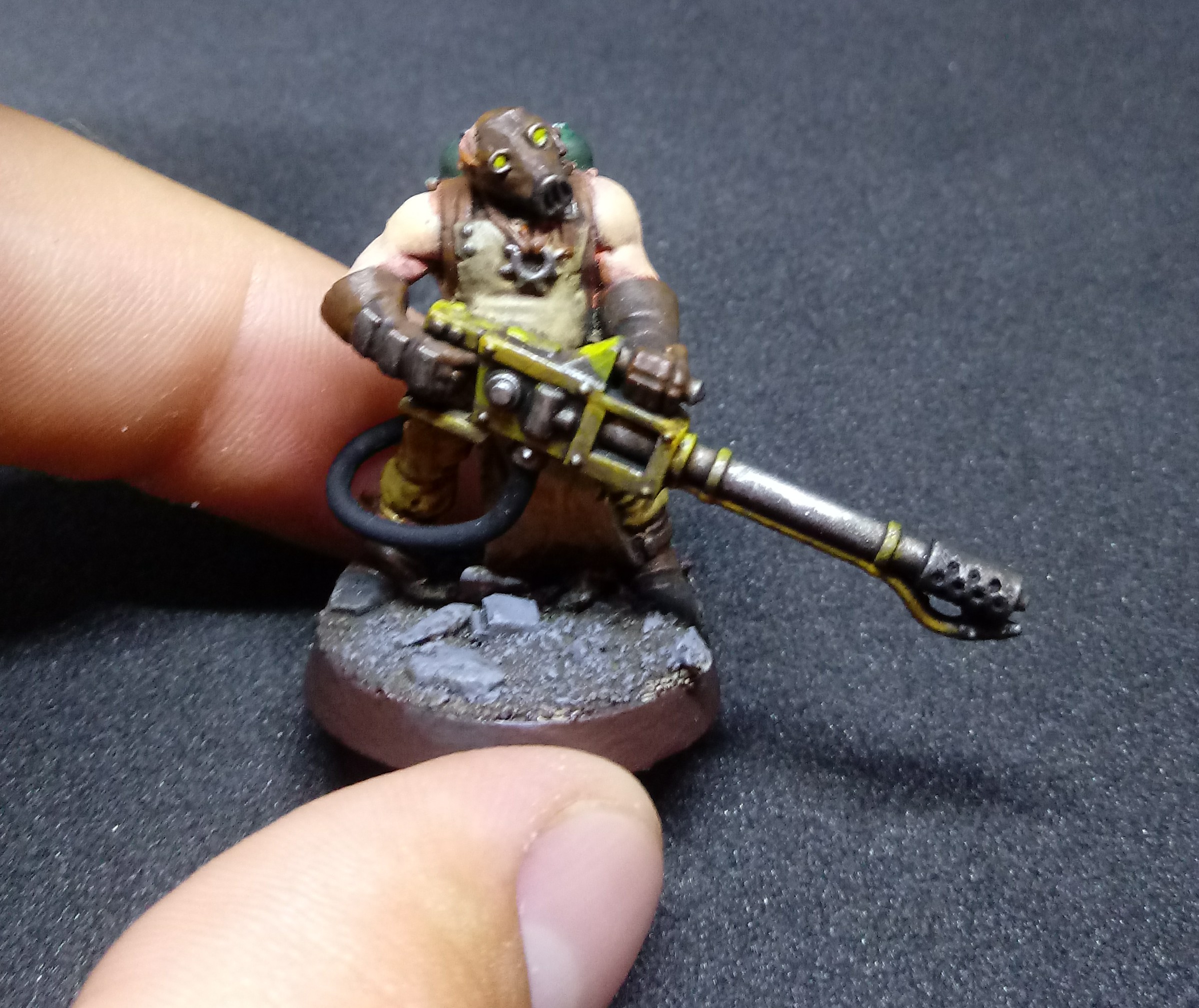 The yellowy brown armour works well with the brass and metal patches. Only (minor) criticism is the eyes. I don't think they're bright enough to stand out against the rest of the yellow based model.