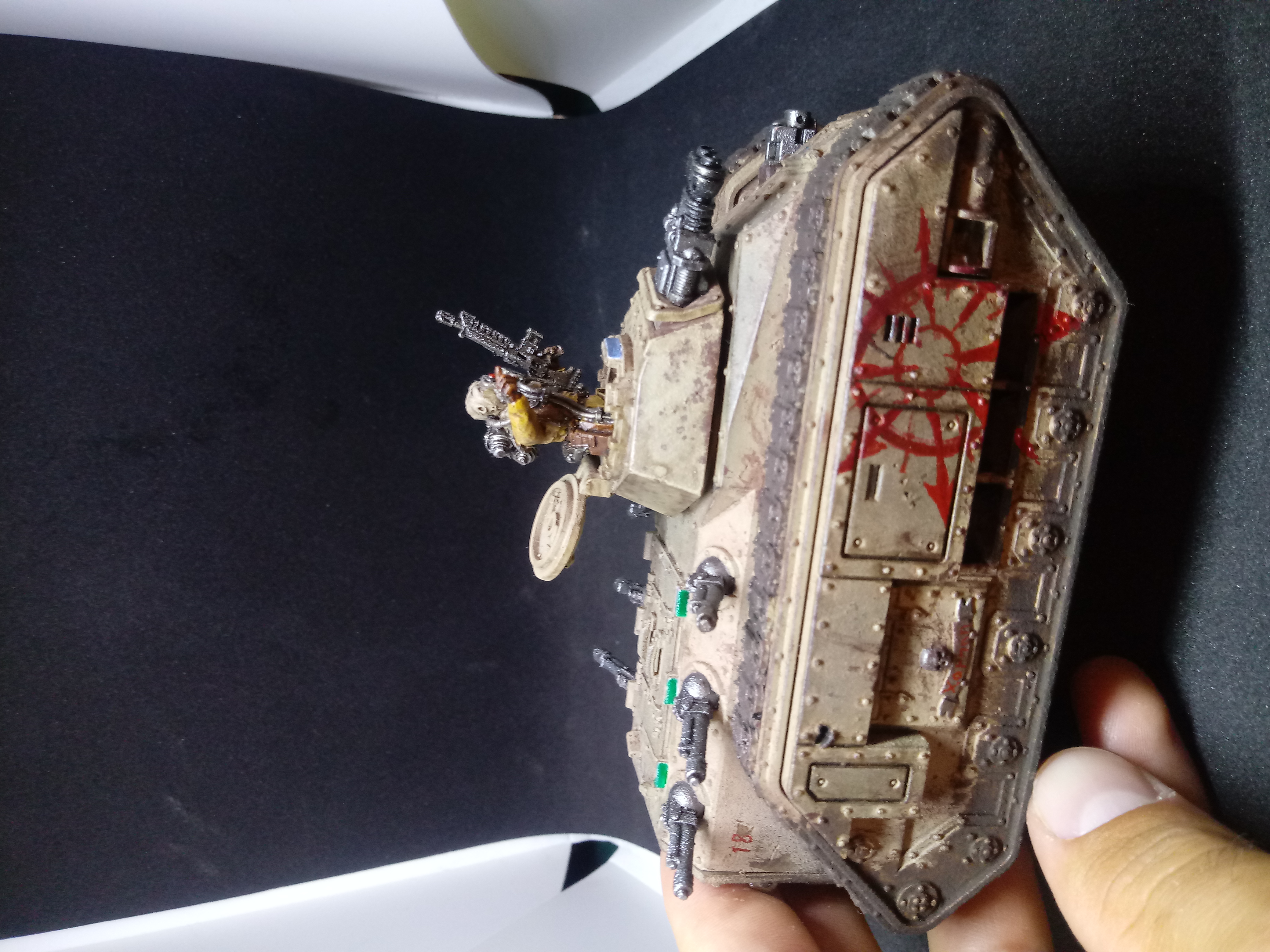 Quick update-Here's a Renegade Militia Chimera I started some time ago and recently finished up. I may add a few more touches such as some rust, what do you guys think?