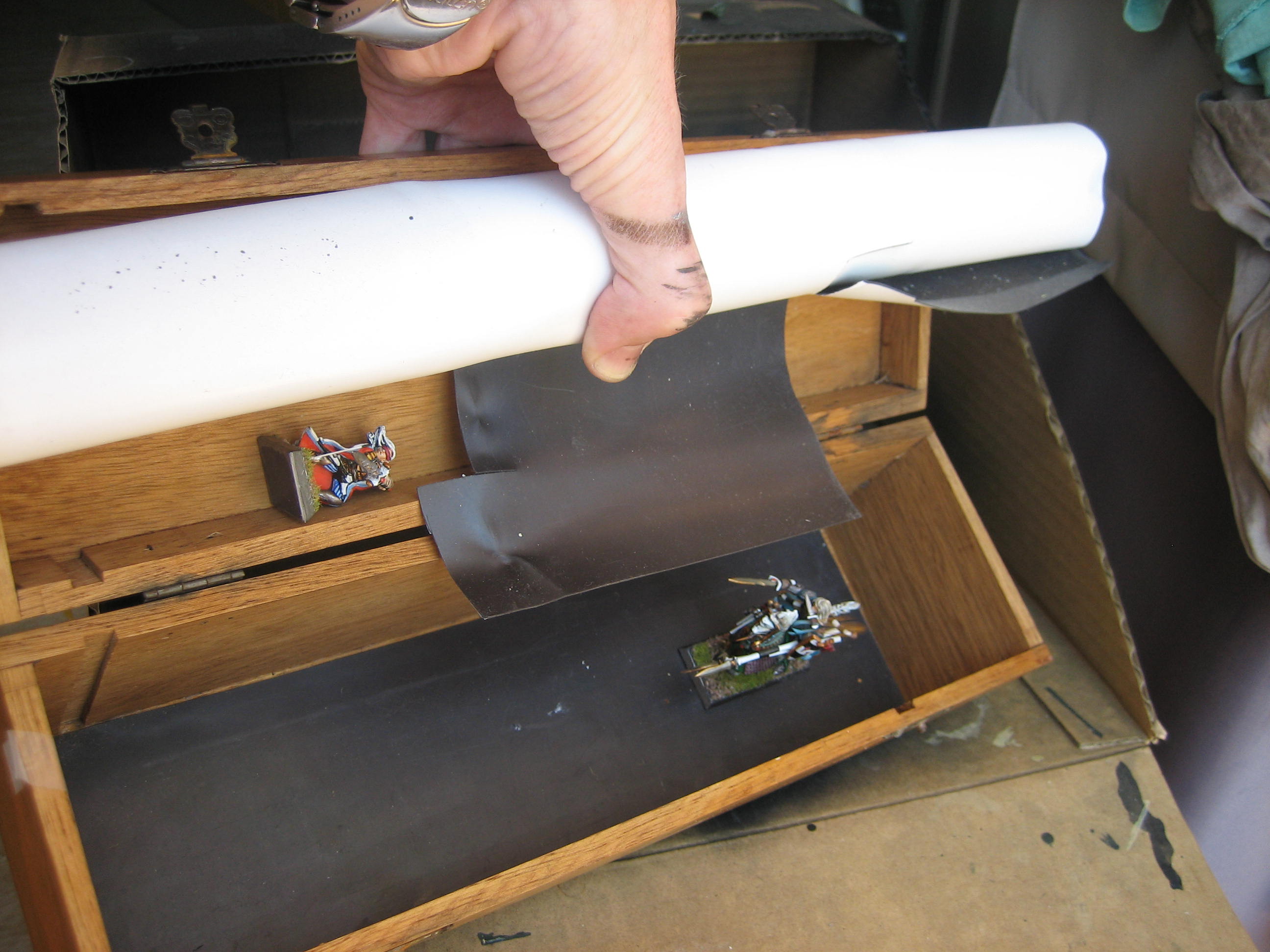 Lucky find with the malt whisky boxes......with a sheet of fridge magnet inside as a base, then the same on the bottom of each figure, you can rotate if 45degrees without losing anyone!