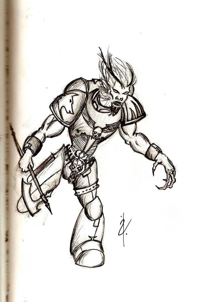 I'm embarased to post my stuff in the same thread with some of you guys, but here's some space wolf/werewolf Doodles.